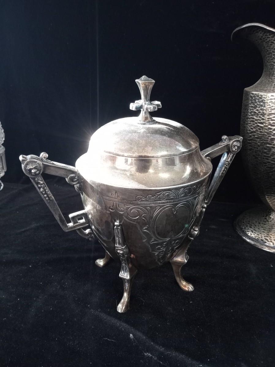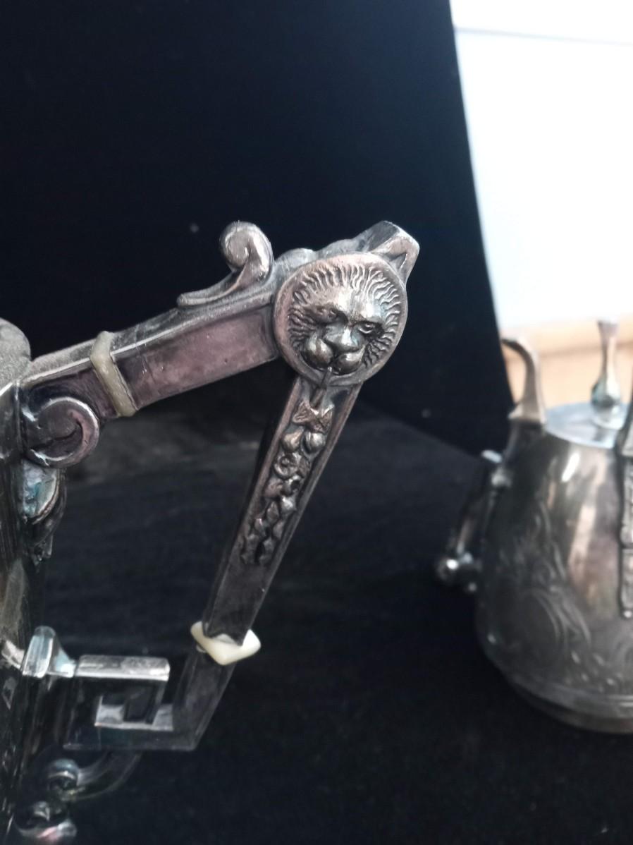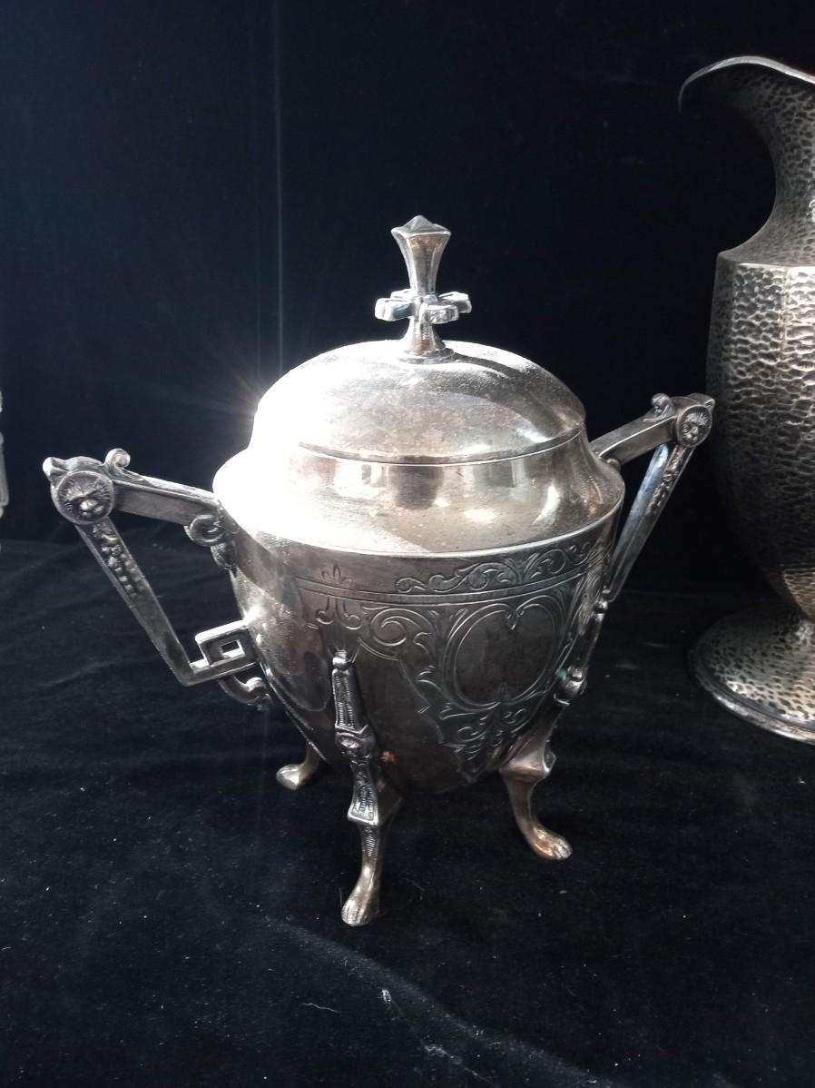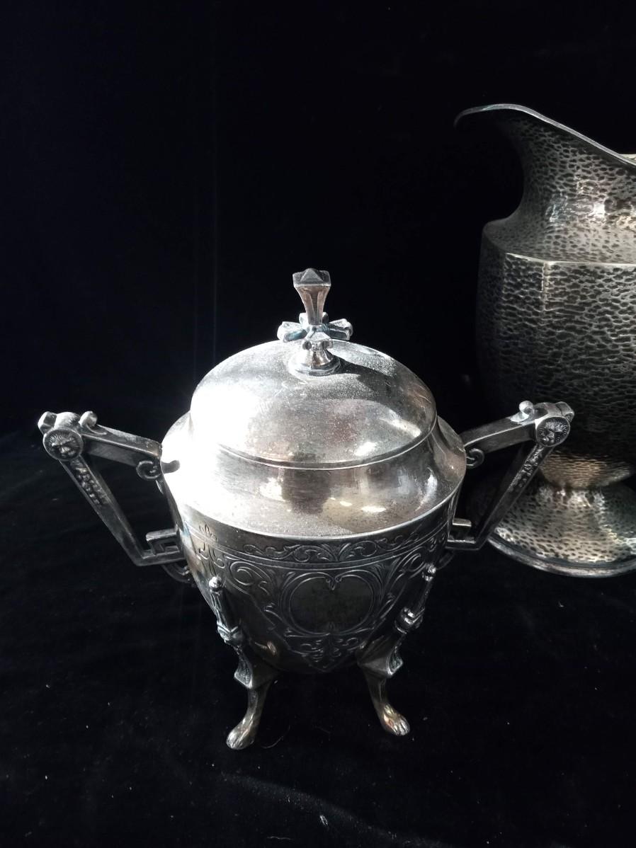 THE PITCHER DOES NOT MATCH THE OTHER PIECES IT IS MADE BY WM MOUNTS THE OTHER PIECES ARE MADE BY LUCIUS HART MFG CO NEW YORK