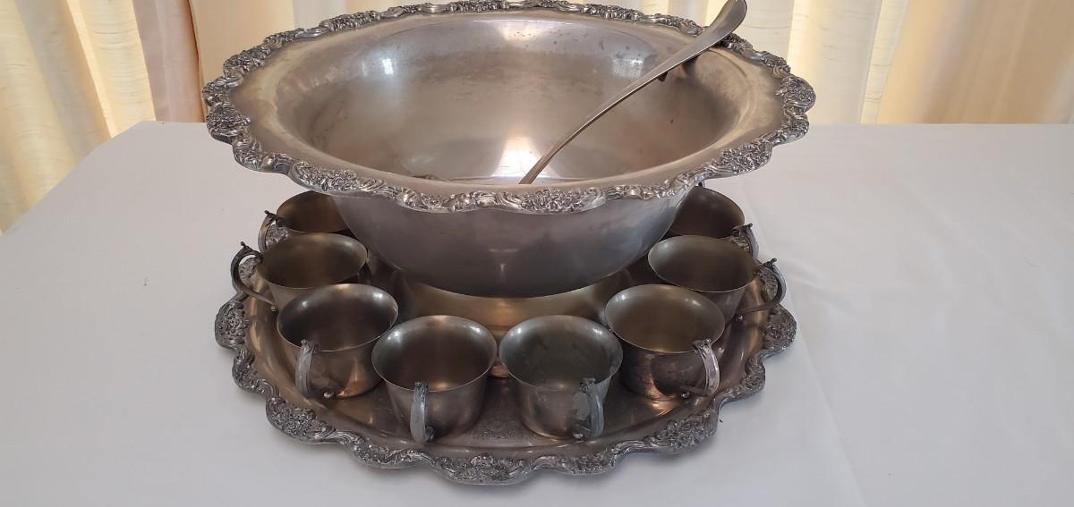 TOWLE Silver Plated Punch Bowl Set w/ 12 cups and ladle