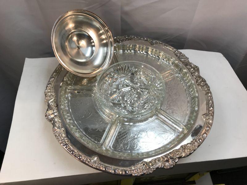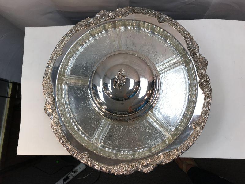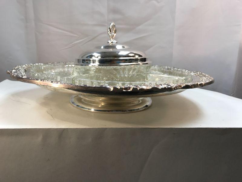 SILVER plated Serving Tray with divided glass inserts YD# 022-0096