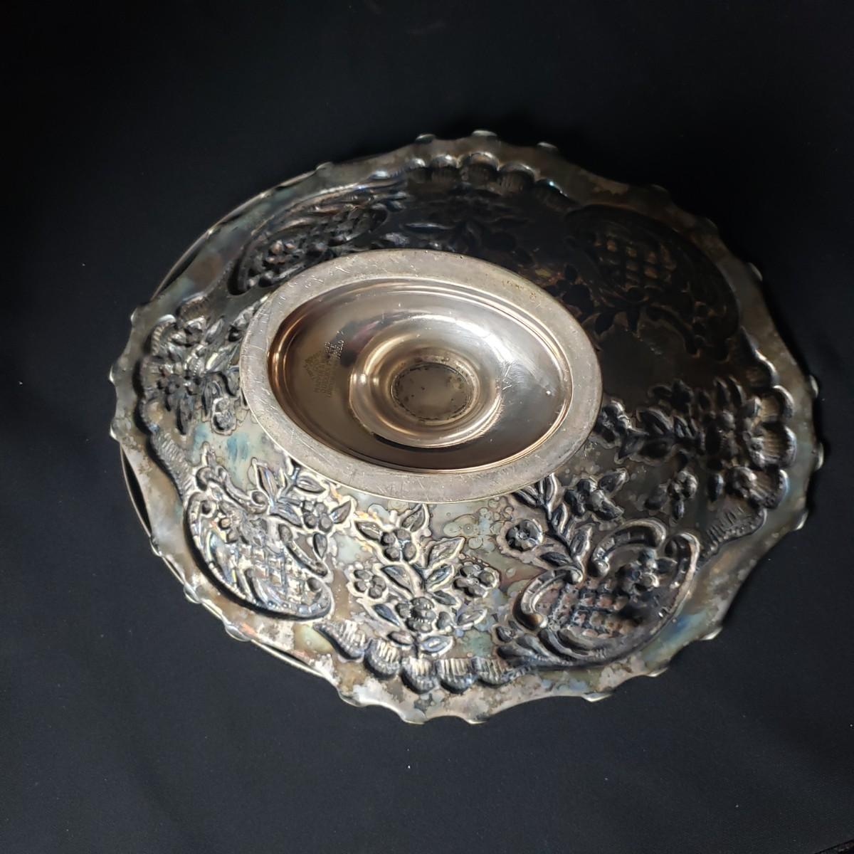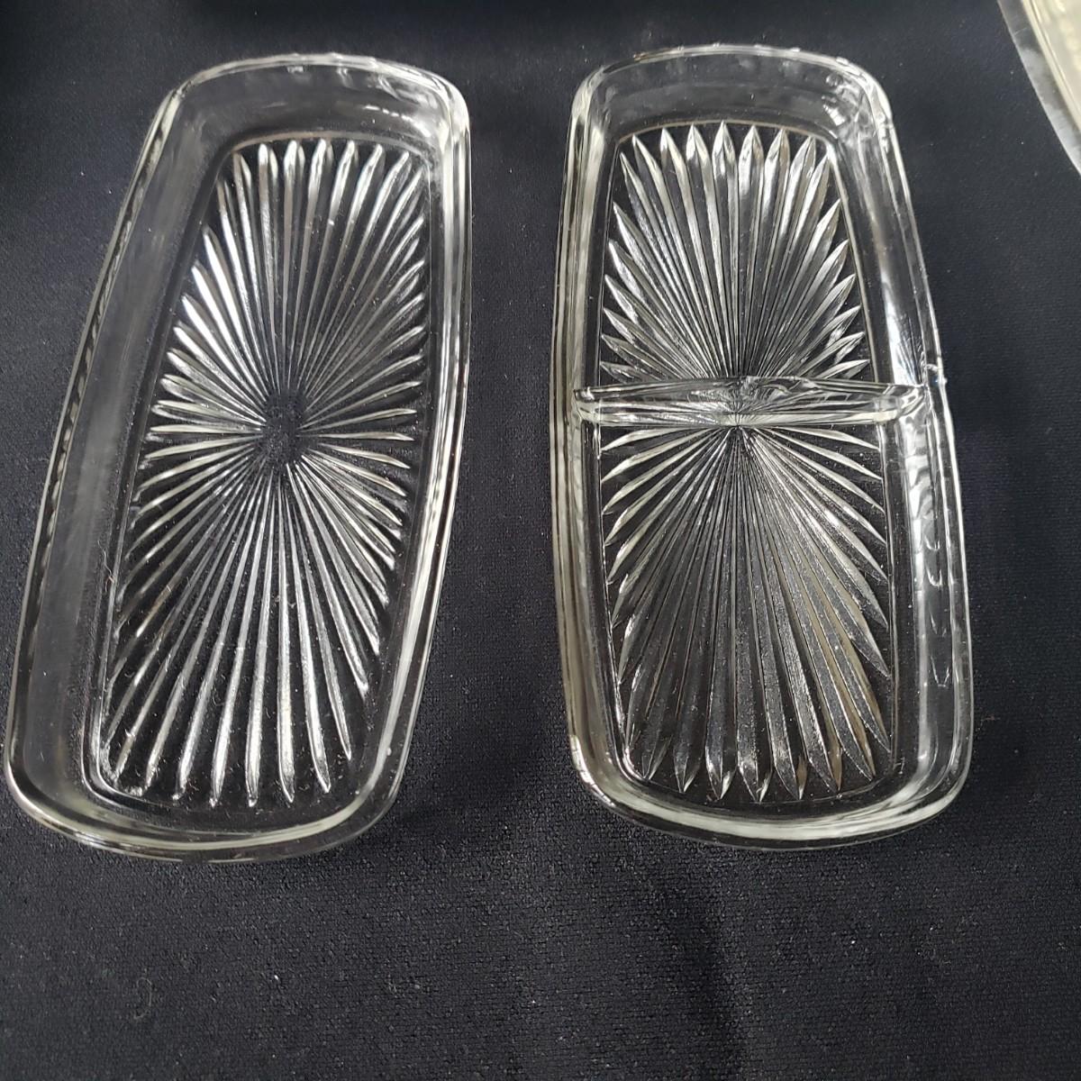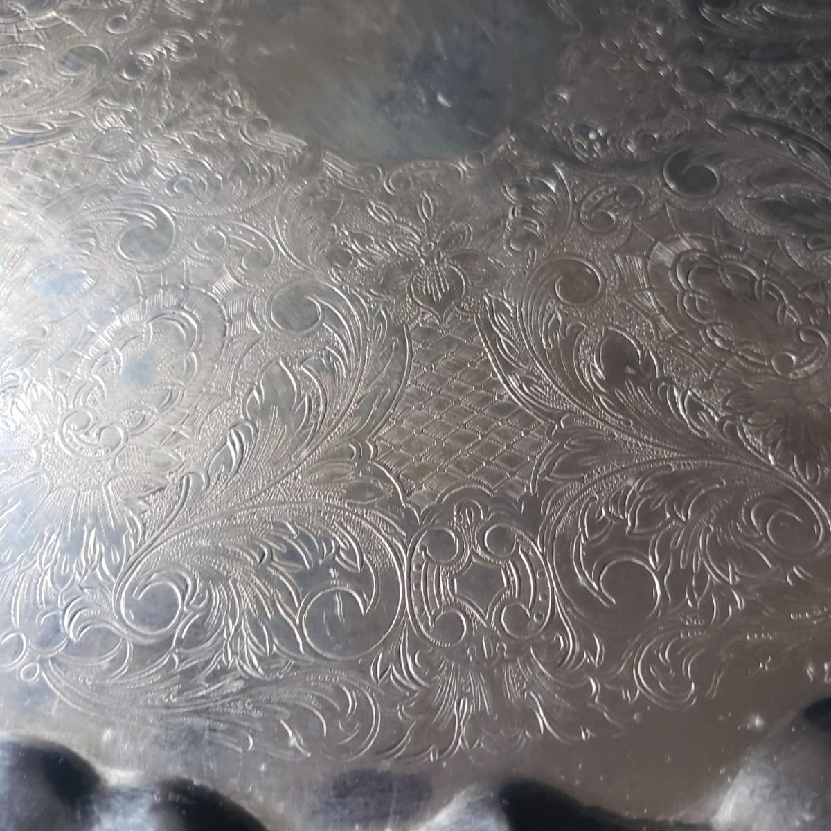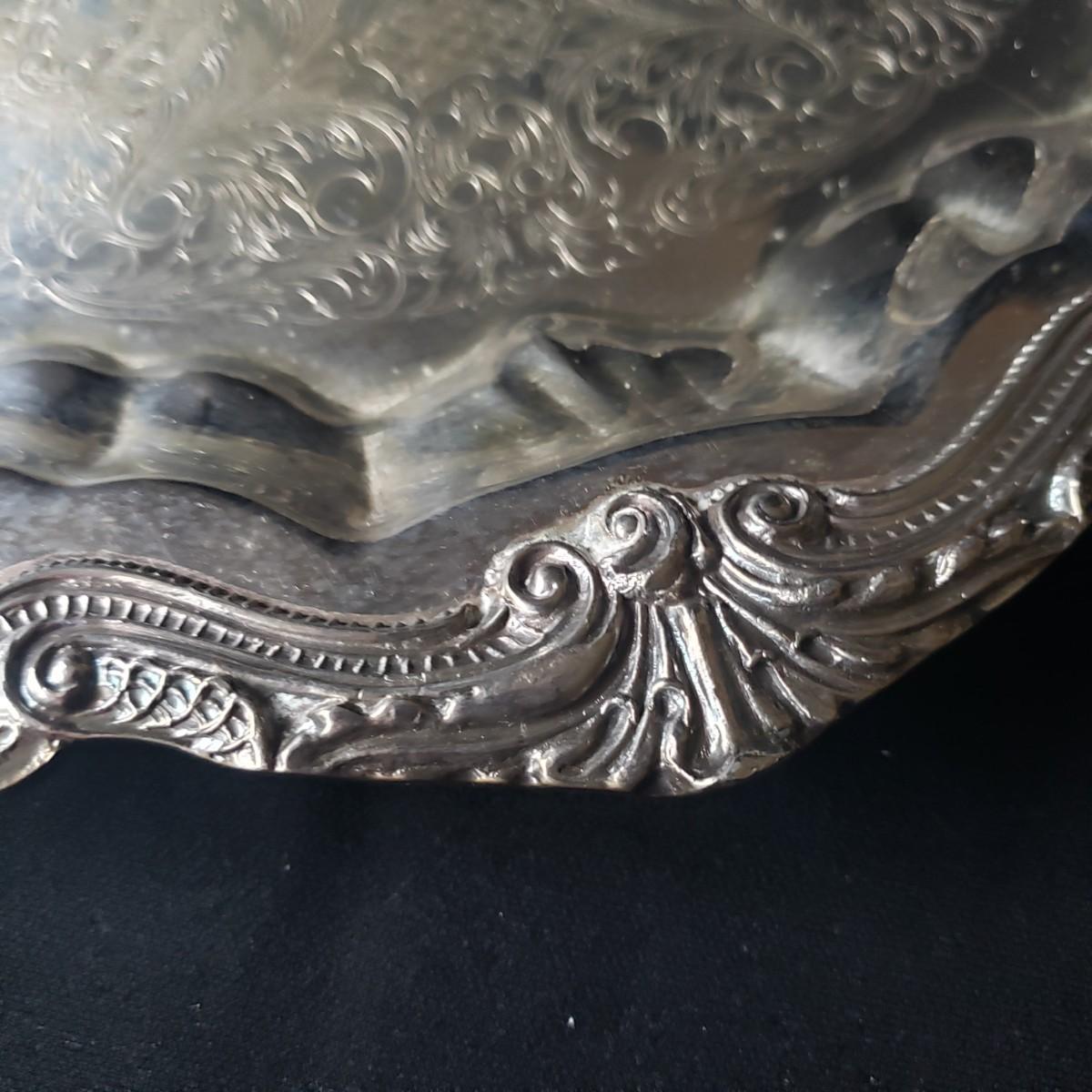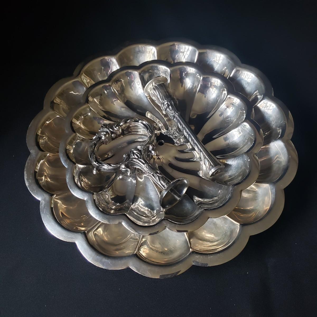 You will be the hit of the town using this serving set at your next party! This 12-item lot has a dual butter/relish dish, heated trivet that heats up when plugged in and a flip top sugar cube dish. The gravy boat measures 9" x 6" x 4"H and is made by Towle. The two-tiered dish made by F.B. Rogers breaks down for easy storage. The last pair of identical serving platters measure 16" x 16".