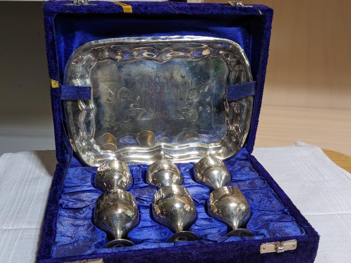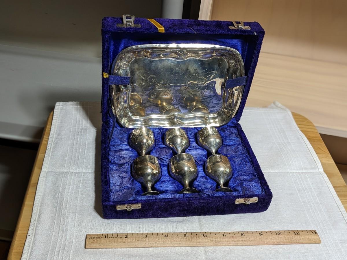 Silver Plated Sherry Cups with Tray, Boxed Set