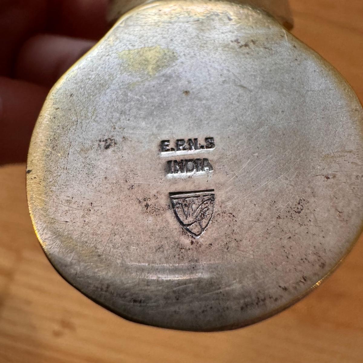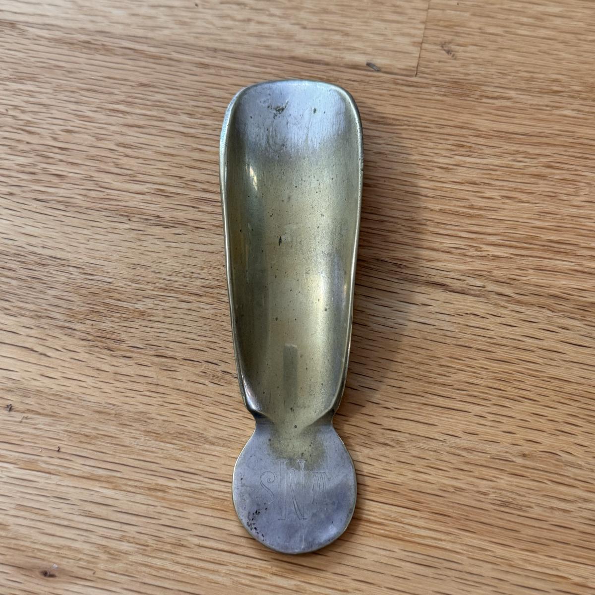 This lot includes two shoehorns and one wooden cane with a brass horse head. One silver-colored shoehorn is stamped with “E.P.N.S. India.” The longer, mid-century shoehorn is stamped with Japan. The wooden cane measures 4” x 33”H. Shipping available.