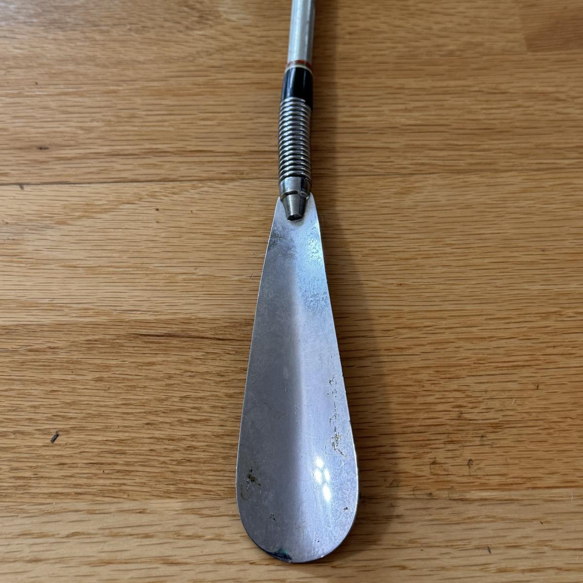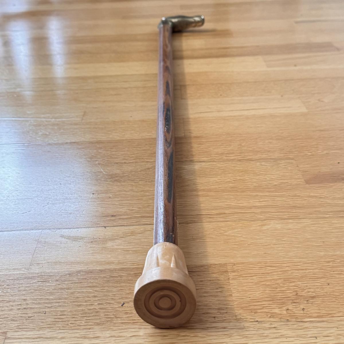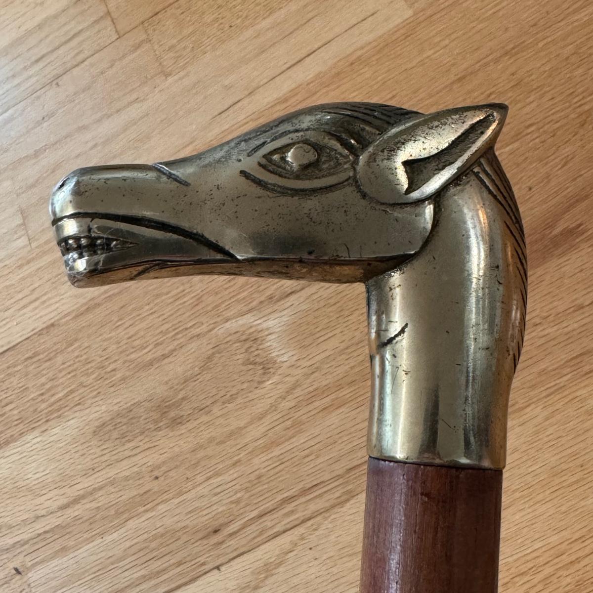 Long Mid Century Shoe Horn and Wooden Cane w/ Brass Horse Head (DR-DZ)
