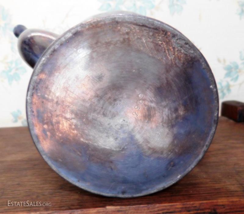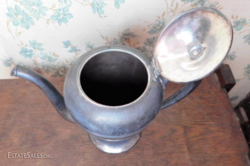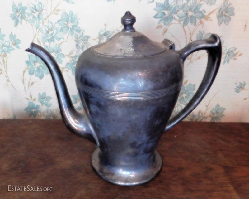 Heavy silver plated teapot with tarnishing and areas of heavy use.