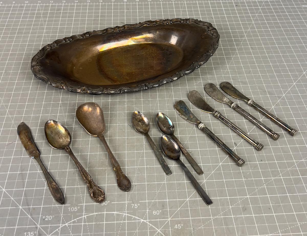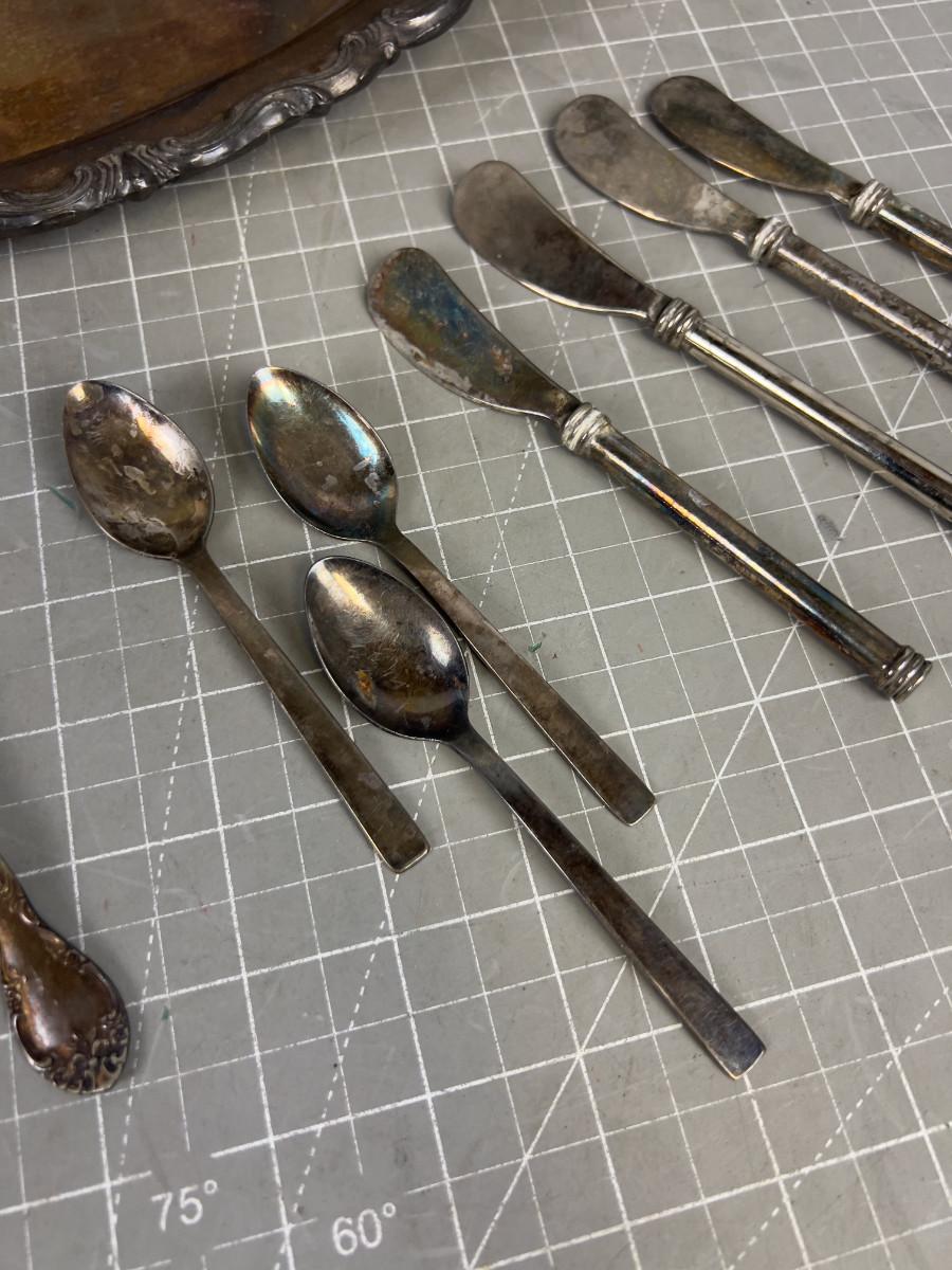 Silver Plated Tray and Utensils