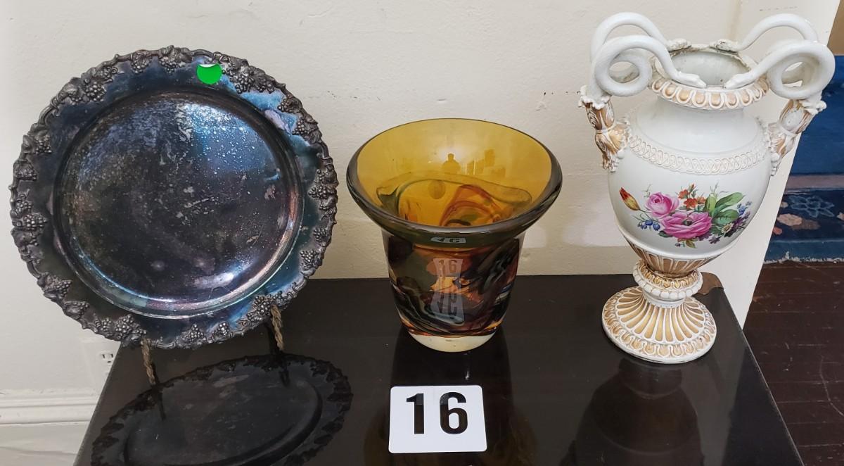 Only 2 Pieces in this lot, orange vase and silver plate tray
