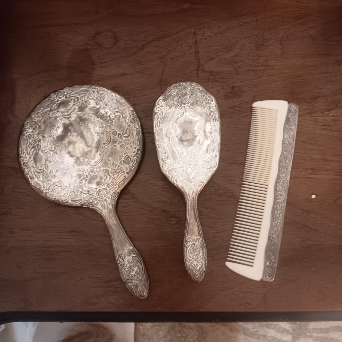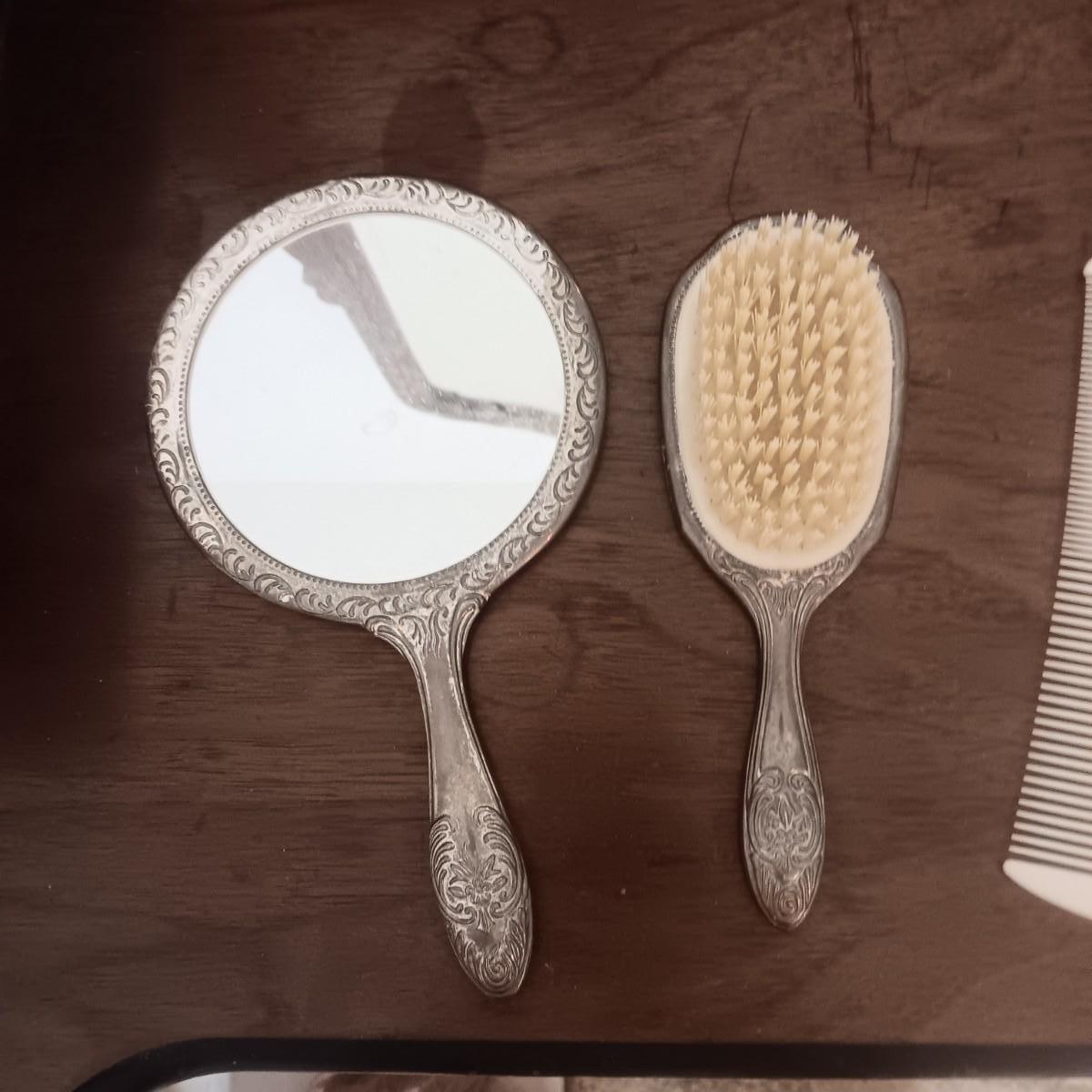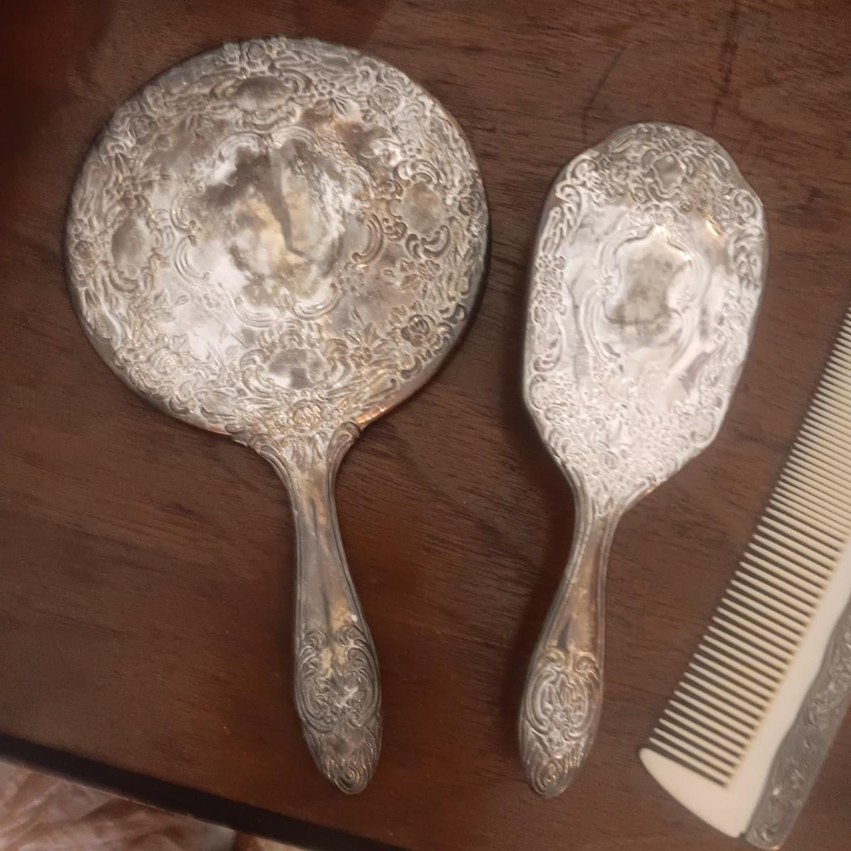 SILVER PLATED VANITY SET WITH MIRROR, BRUSH AND COMB