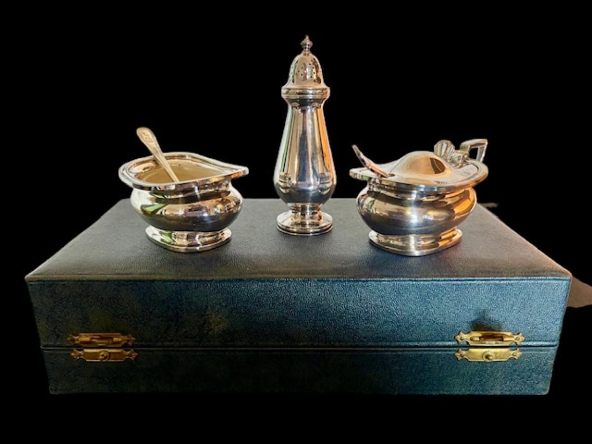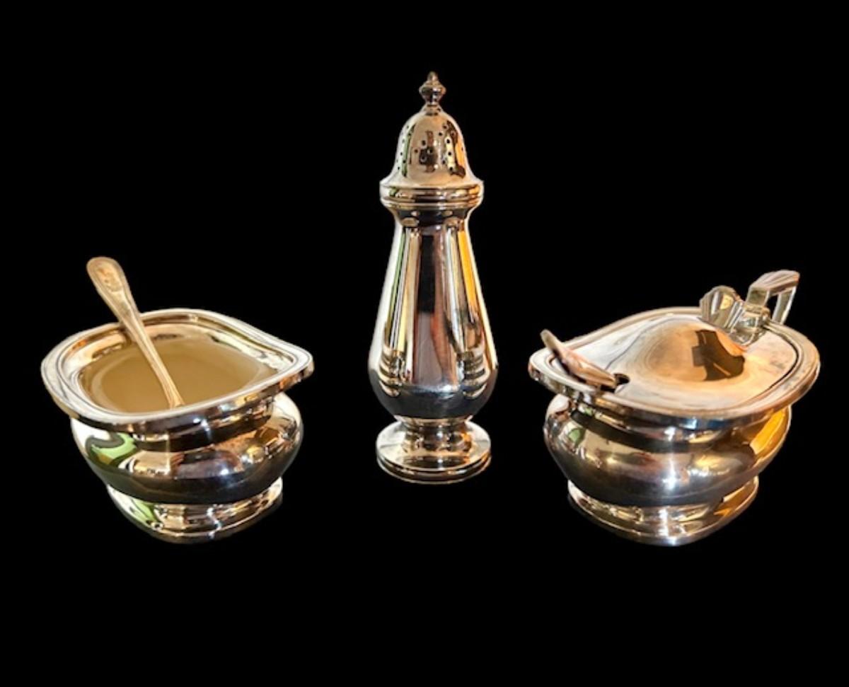 Silver Plated Victorian Style Salt, Pepper, Mustard Pot (3 piece set)