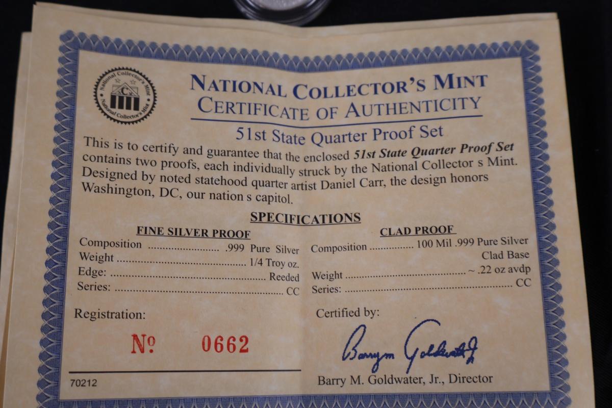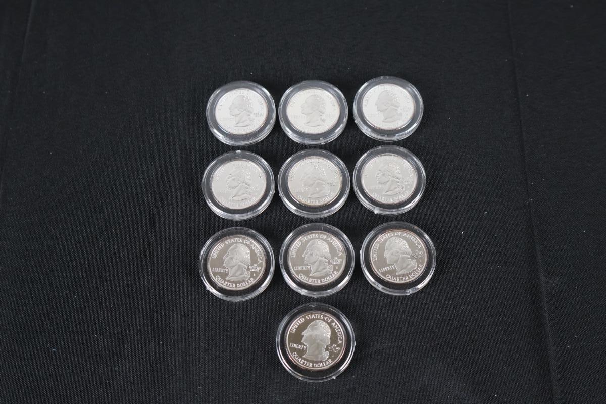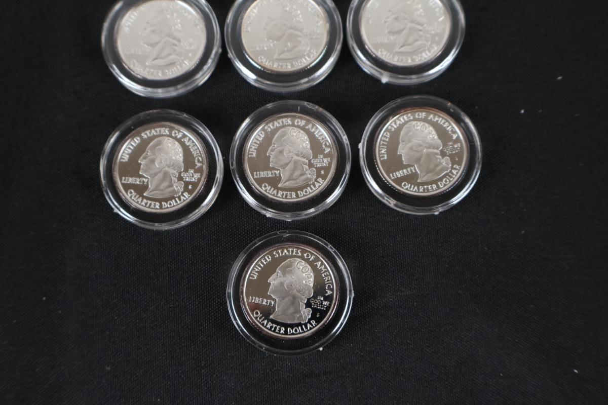 Important Note: This is a mixed lot that includes both .999 Silver proof quarters (1/4oz) and silver-clad proof quarters. The included COAs show the details. 1 clad proof is missing from the lot.