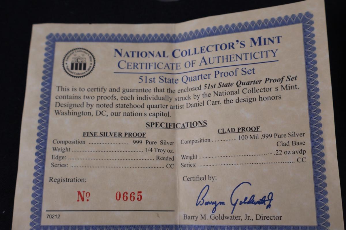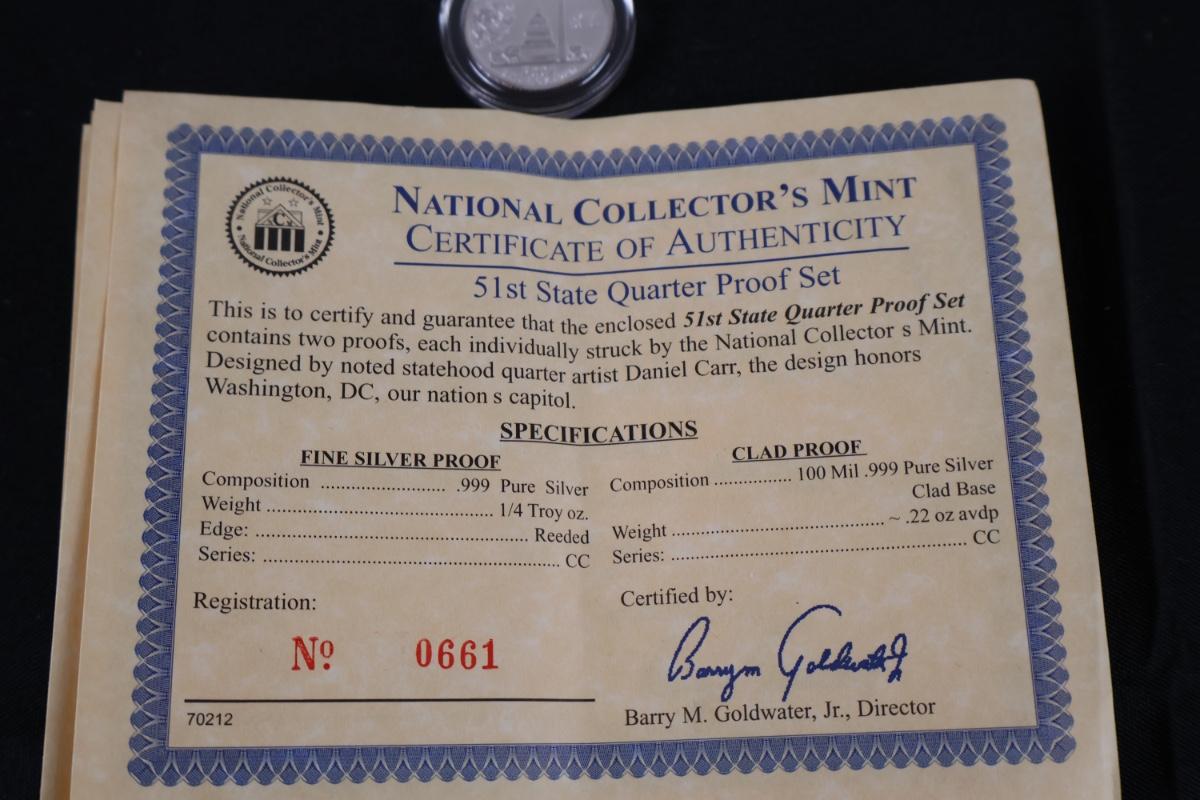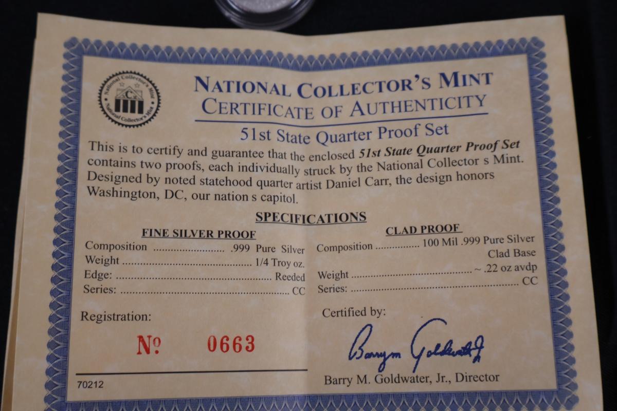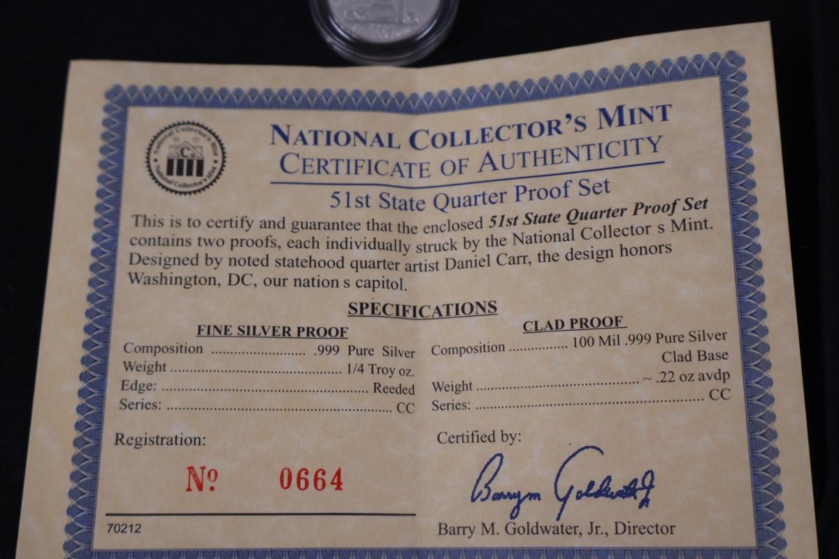 Important Note: This is a mixed lot that includes both .999 Silver proof quarters (1/4oz) and silver-clad proof quarters. The included COAs show the details. 1 clad proof is missing from the lot.
