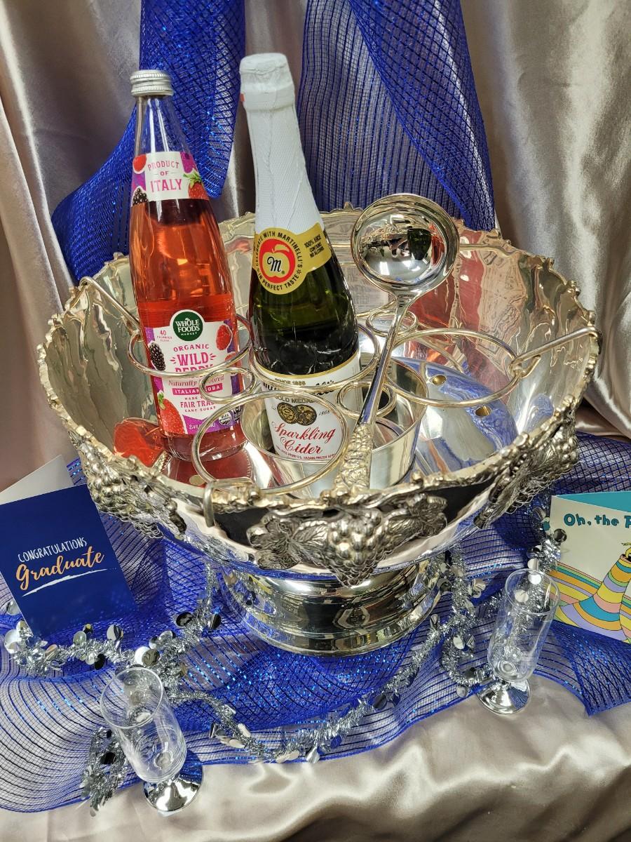 Start your graduation party with everything pictured with this item Bowl is 12 inches tall by 15 inches diameter.