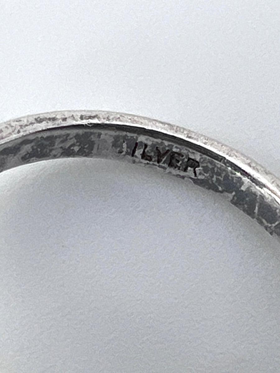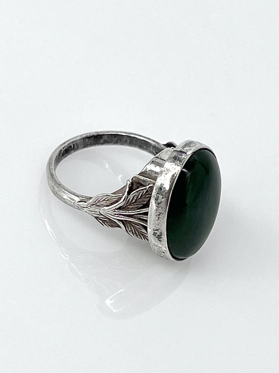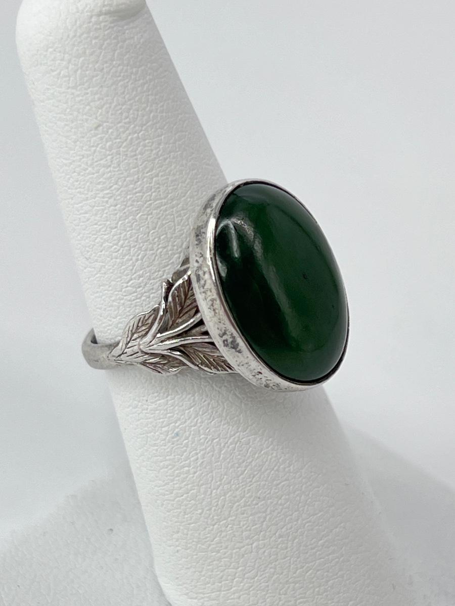 Appears to be Sterling but no guarantee because it's marked Silver~ Stone appears to be dark jade or a jade type stone. Stone = 17m x 12m ~ Estate of Elizabeth Kinsley