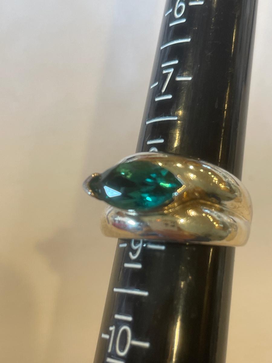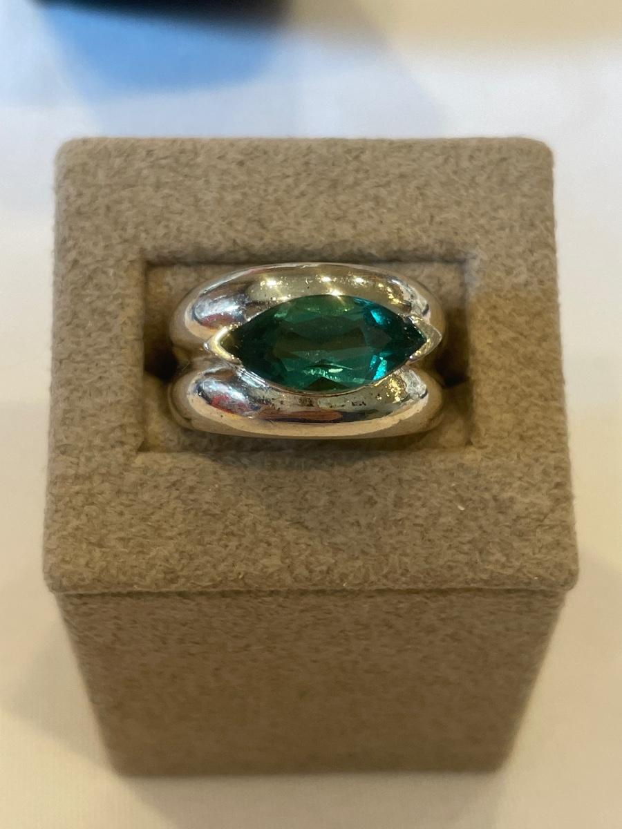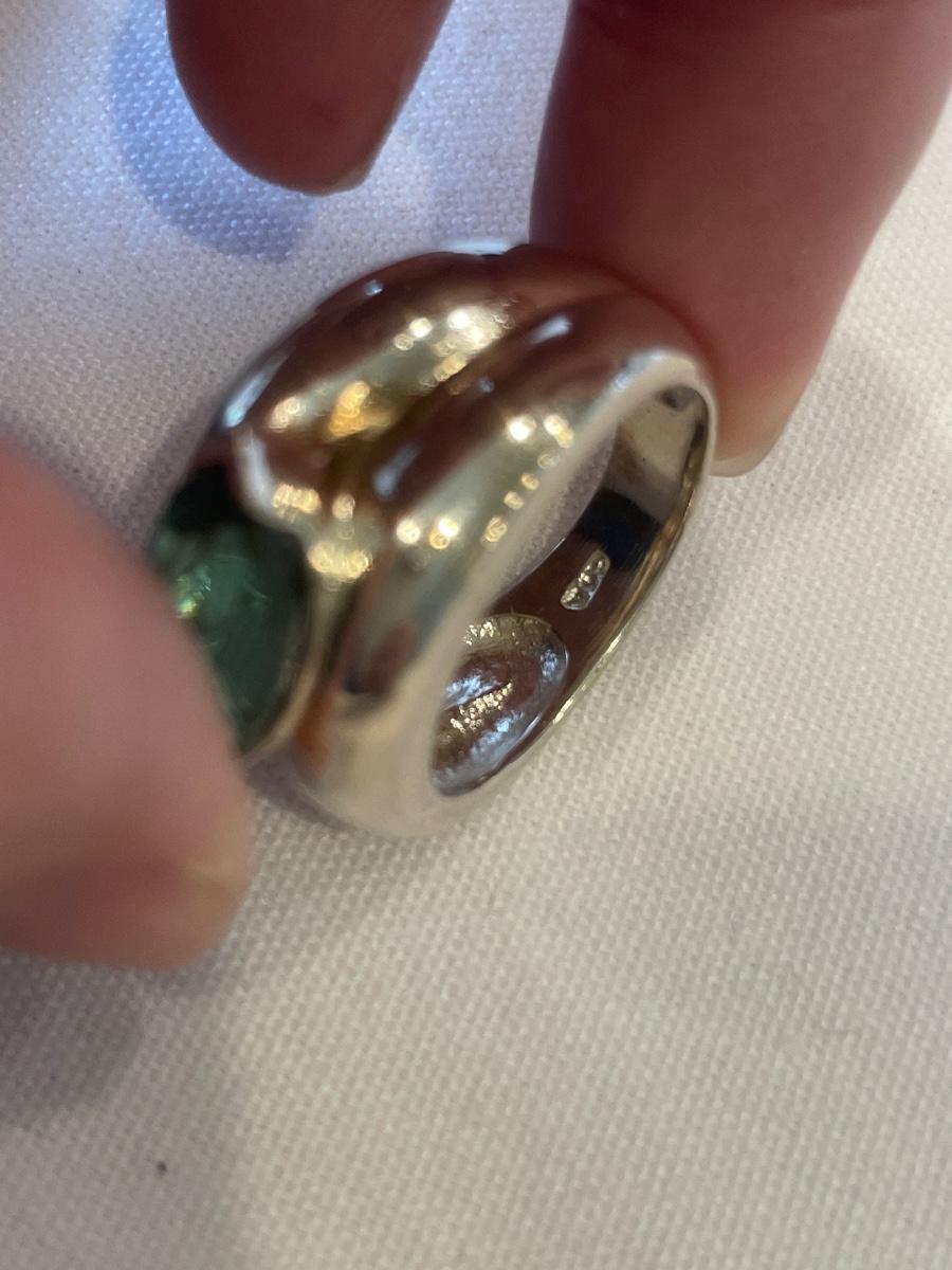 Silver ring with green stone