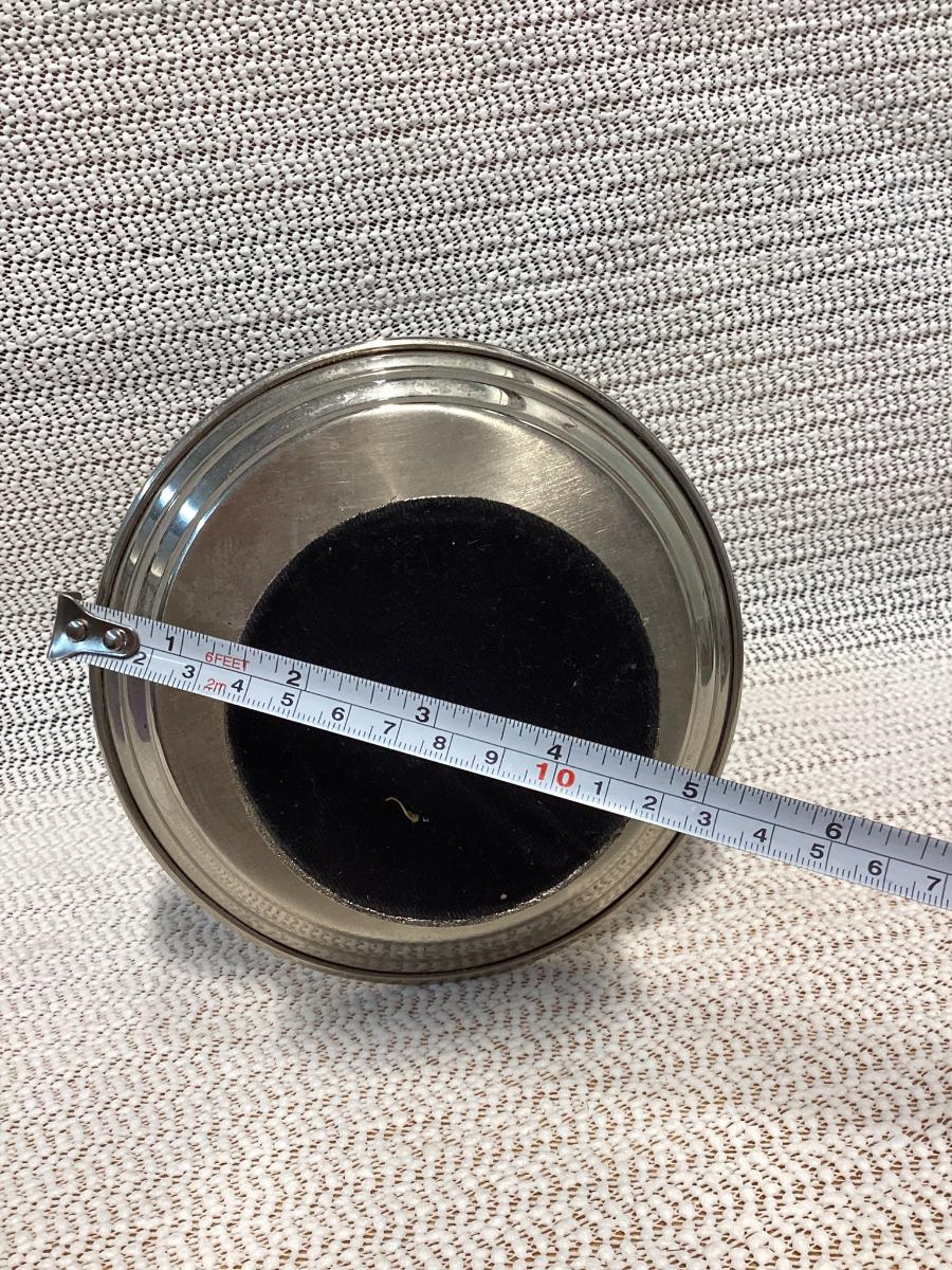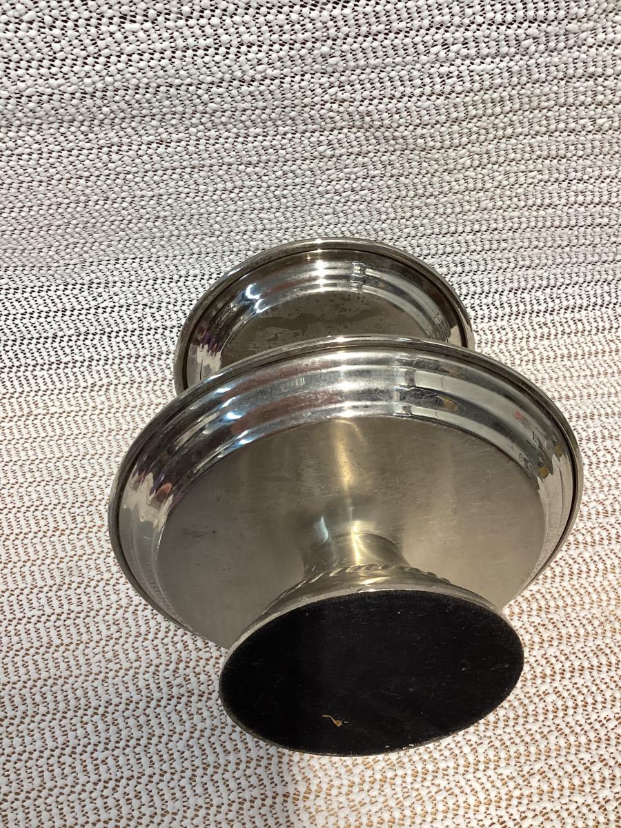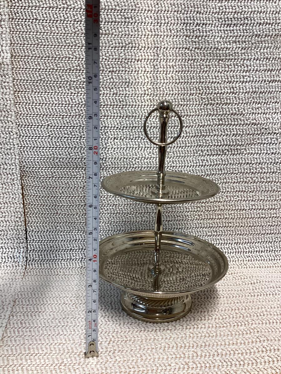 silver round 2-tier tray made of classic stainless steel.