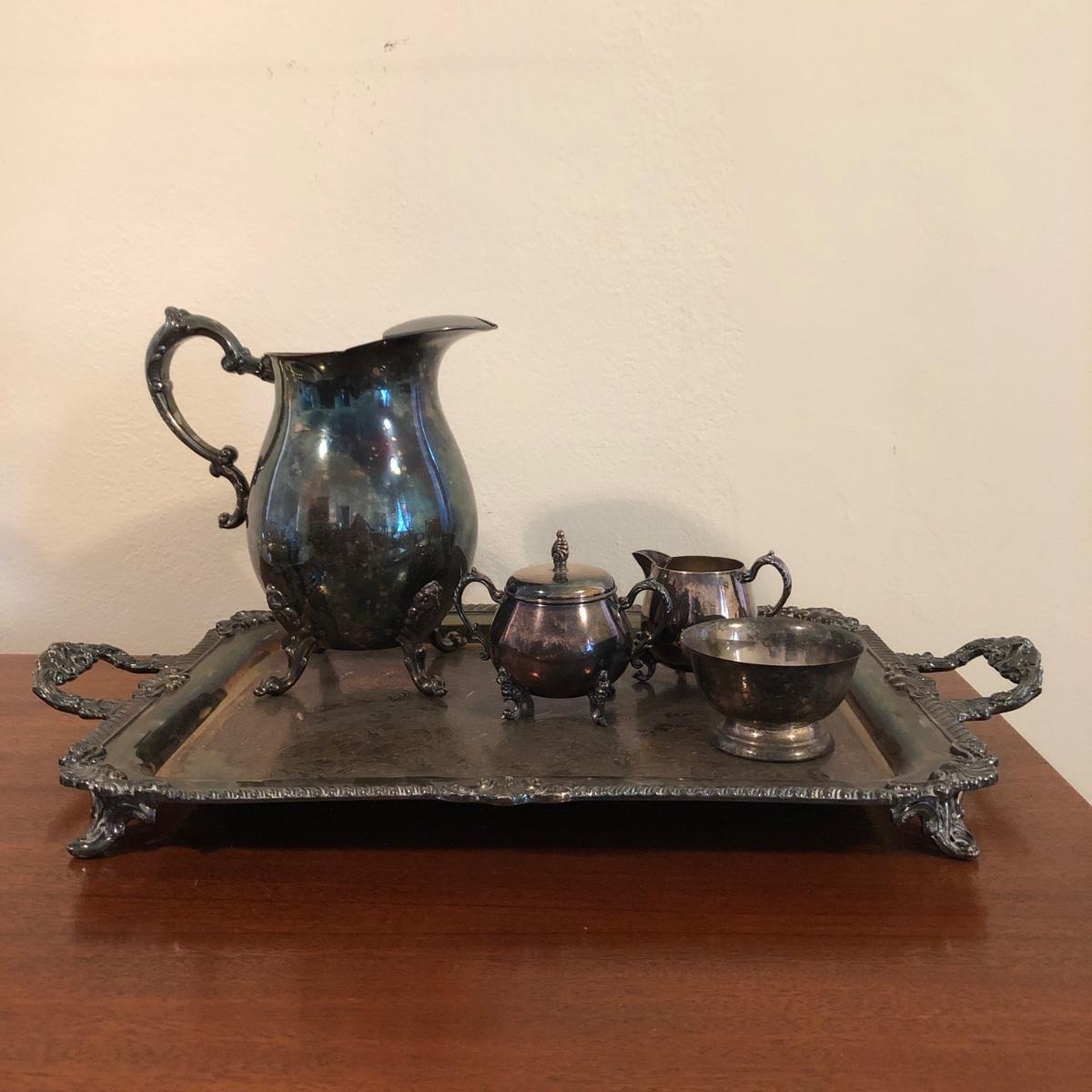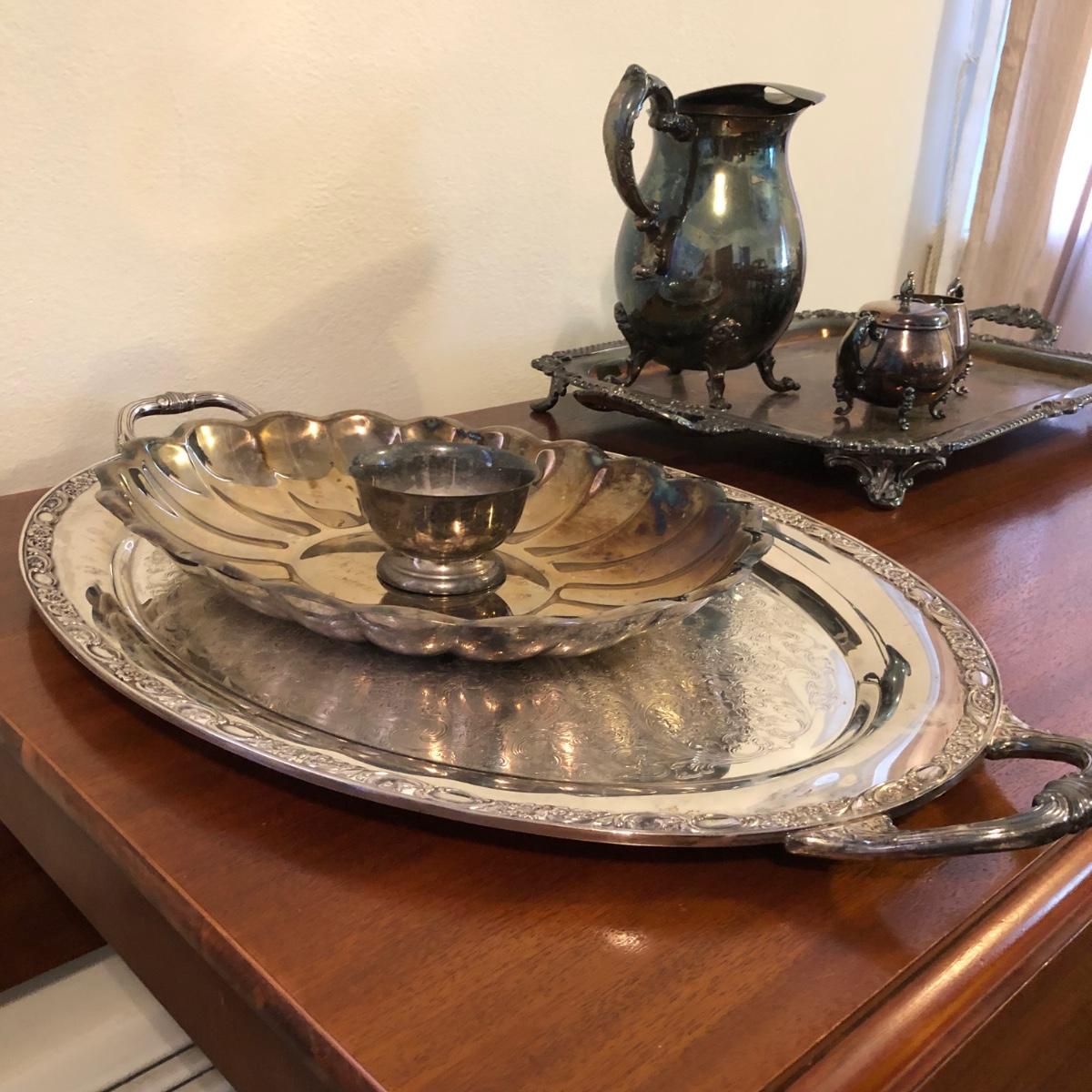 Silver Plated Serving Platters, Pitcher, Bowl, and Servers (DR-JF)