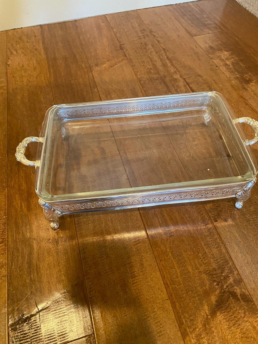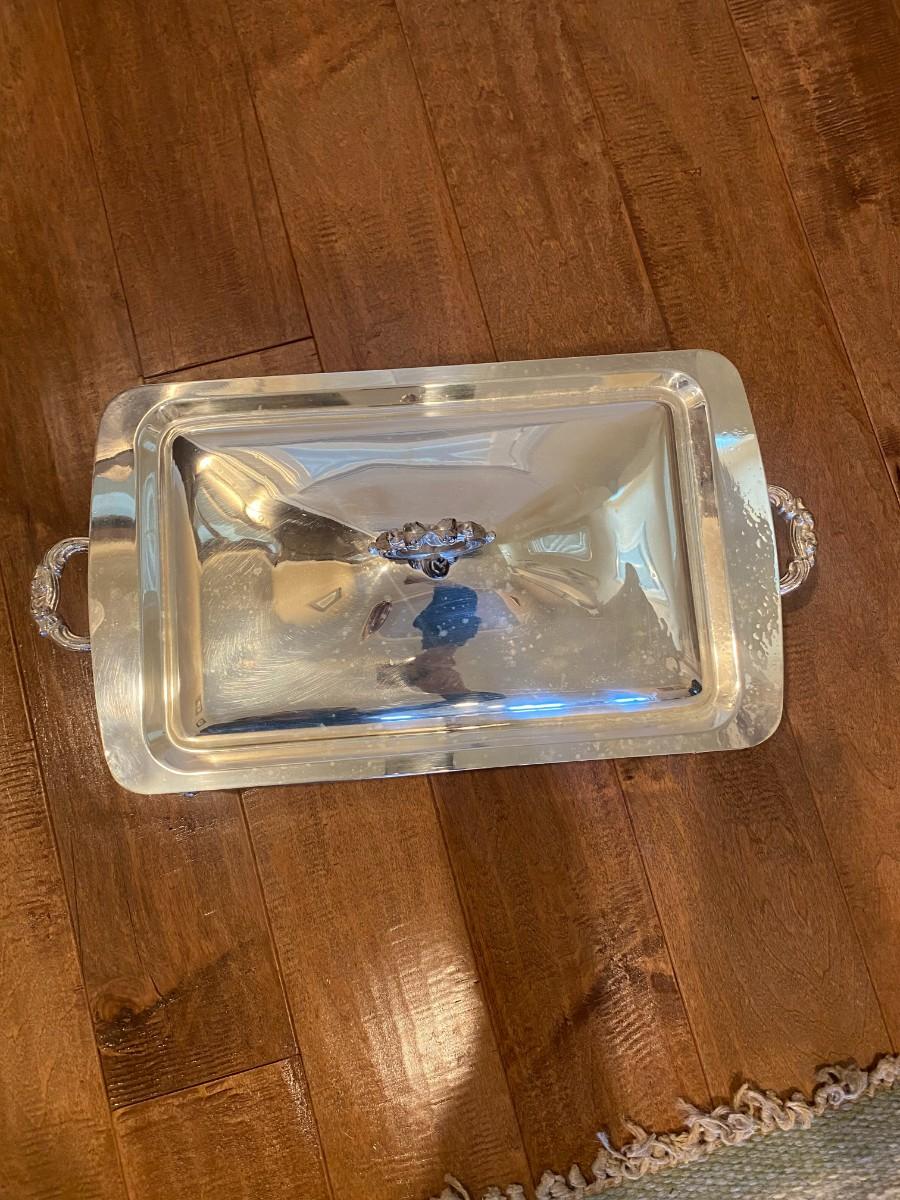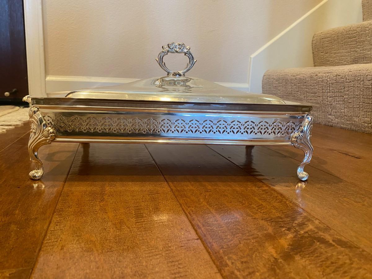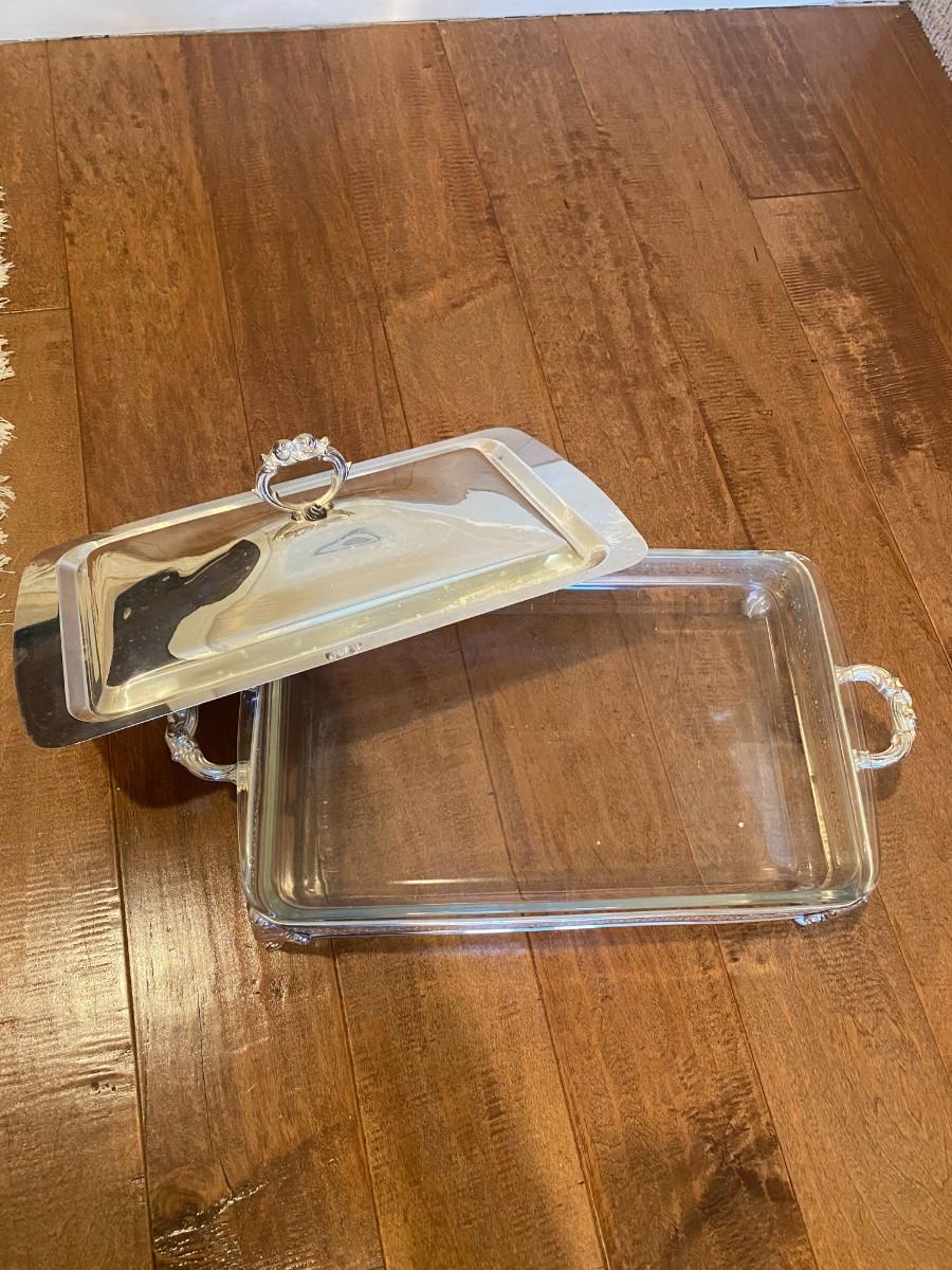 Silver Serving Dish with Lid and Pyrex Dish insert 8" x 5".5