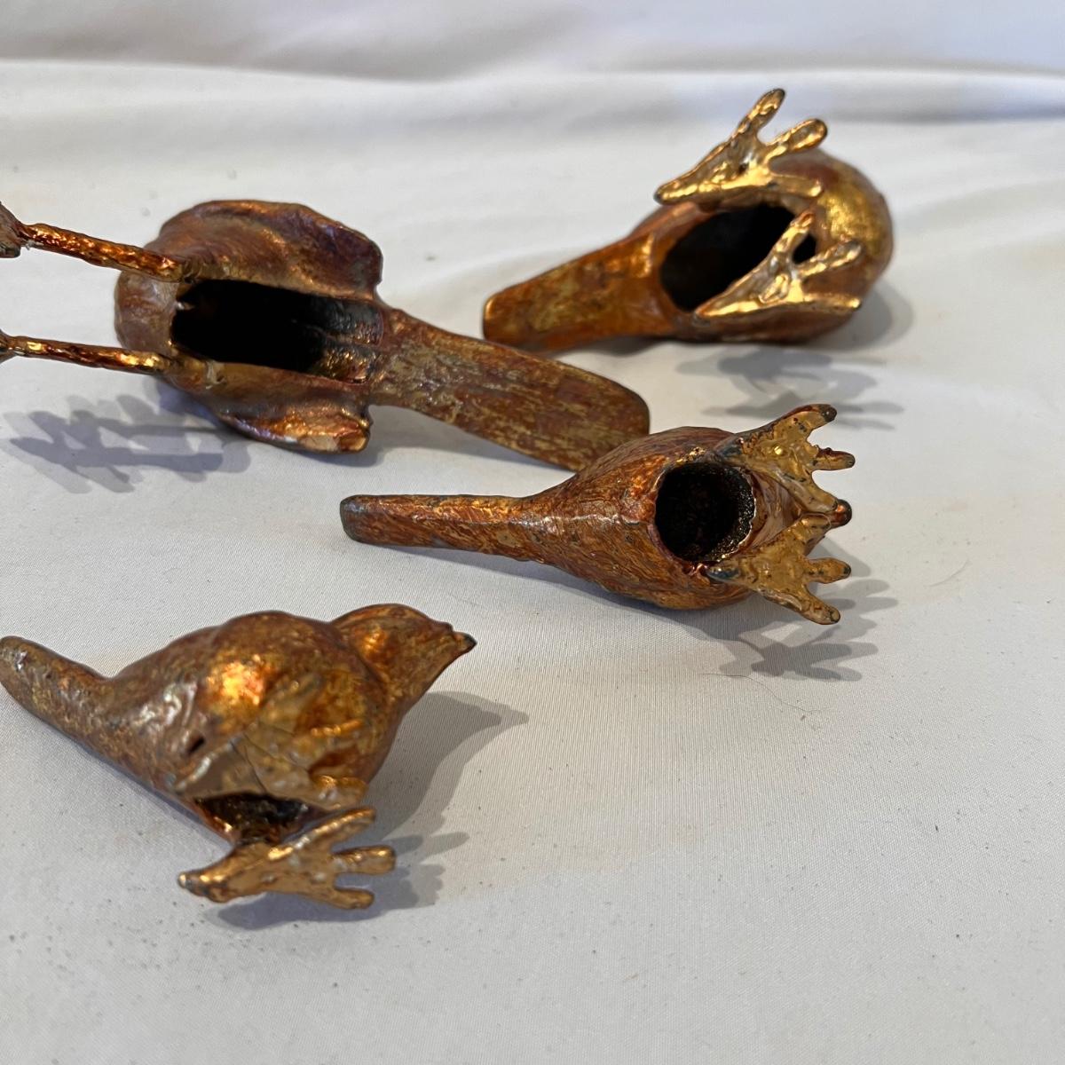 Largest of the bronze/gold colored birds measures 4” x 2” x 4.5”H.