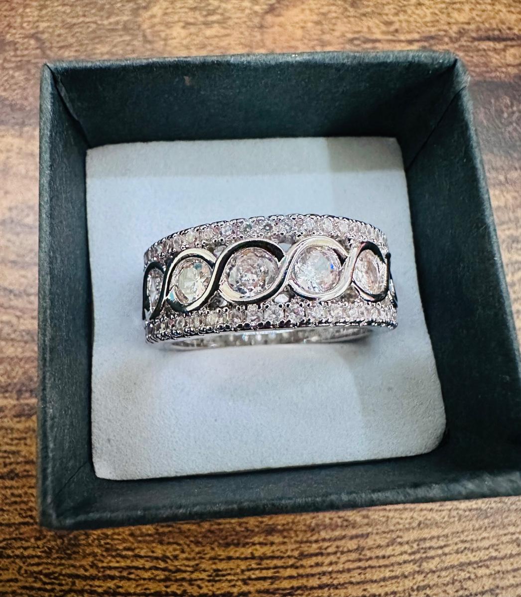 18k white gold plated band with Swarovski crystals.