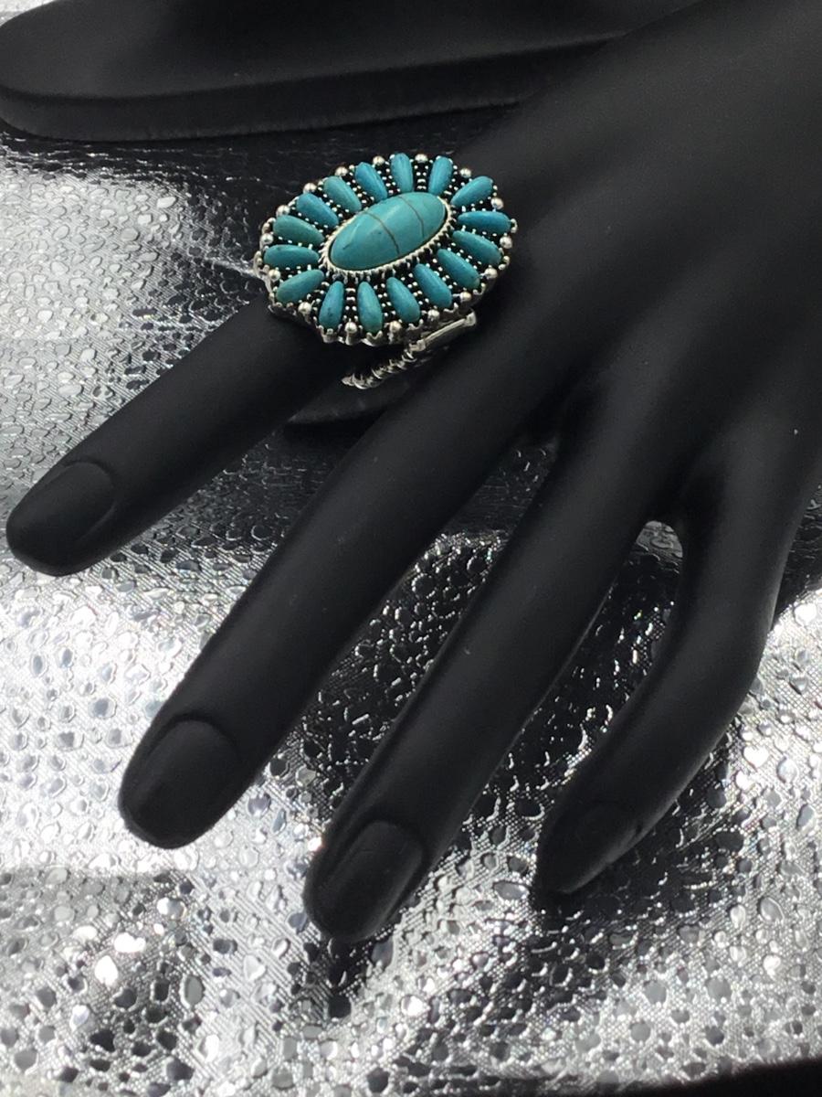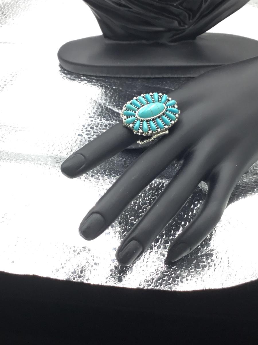 Silver tone adjustable blue fashion ring