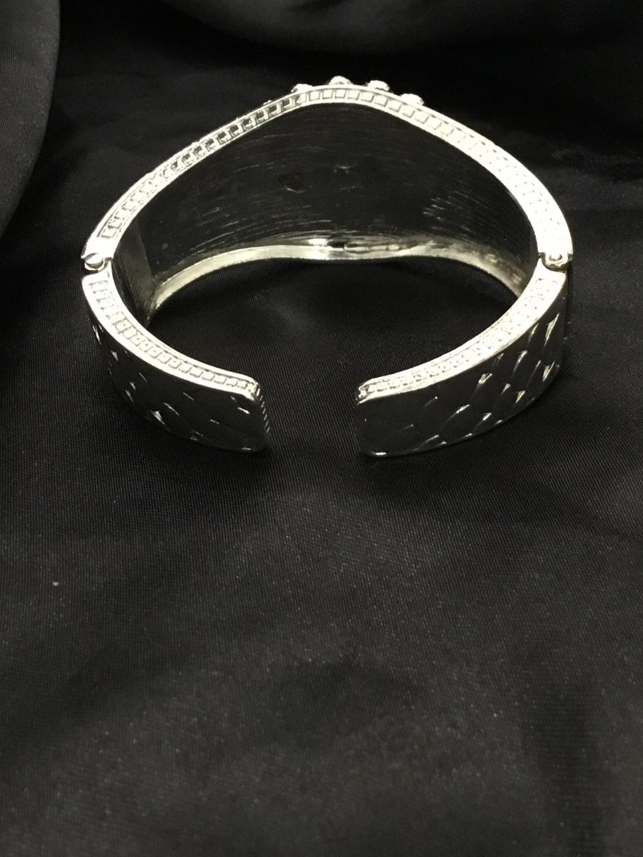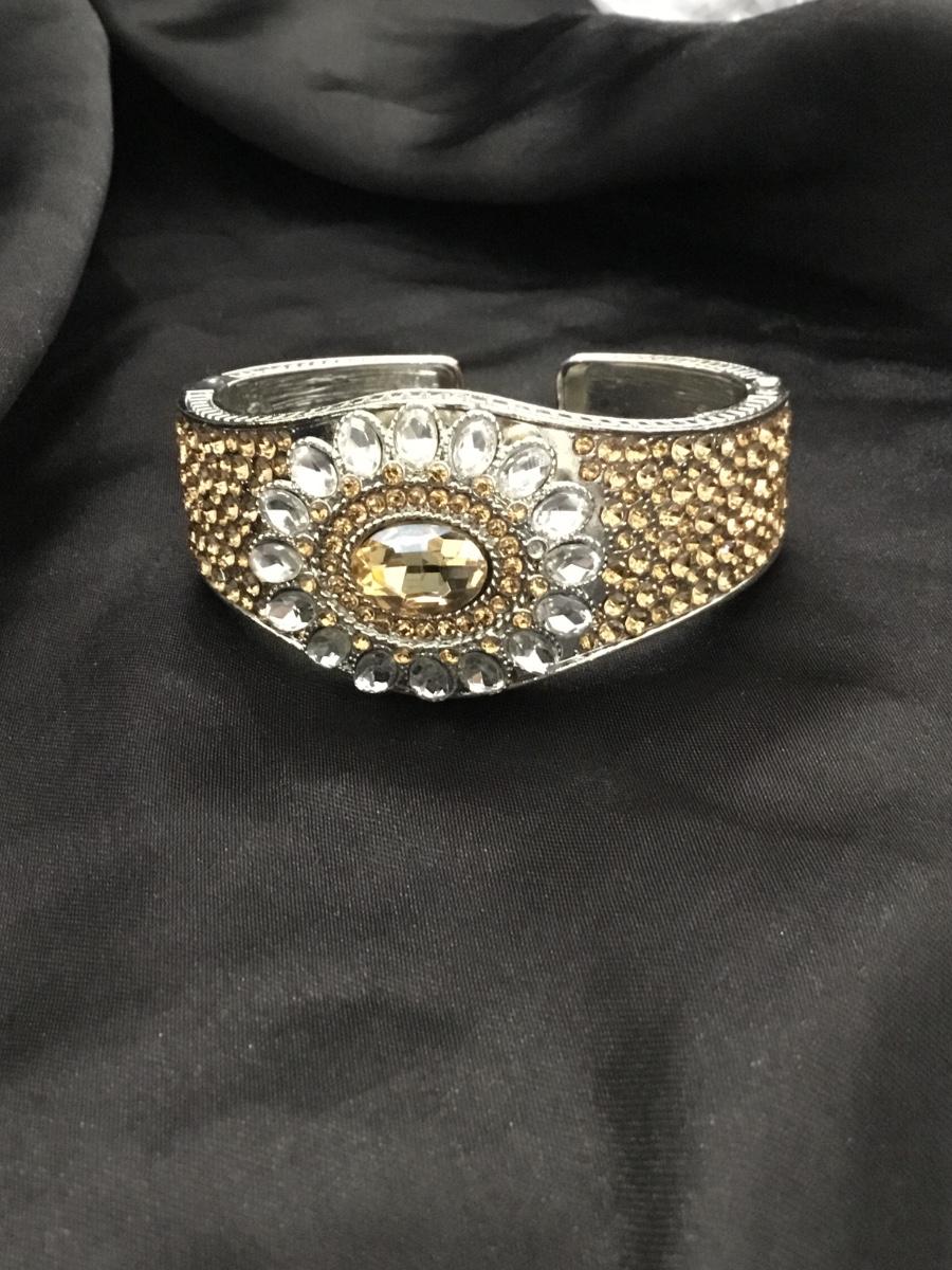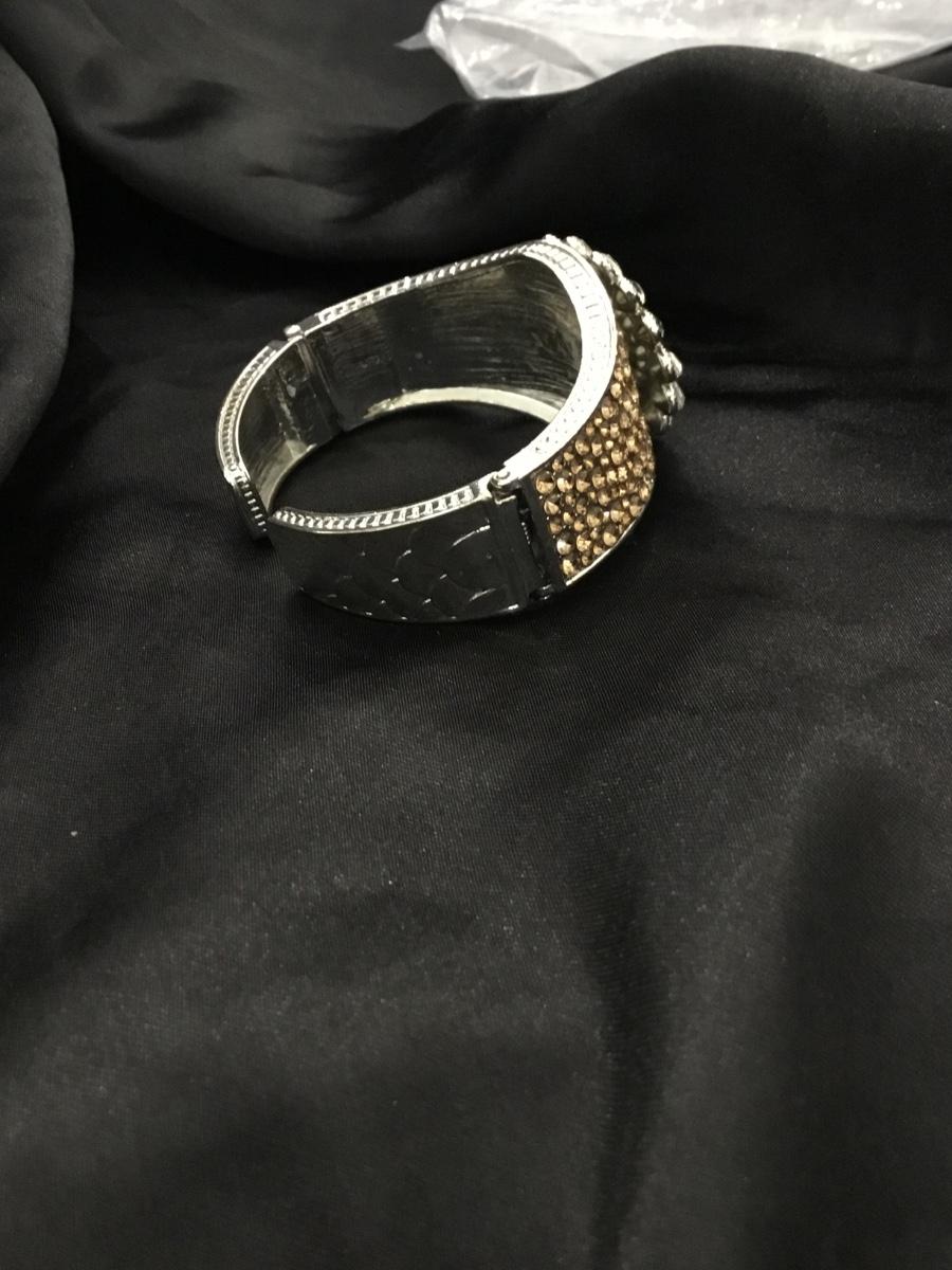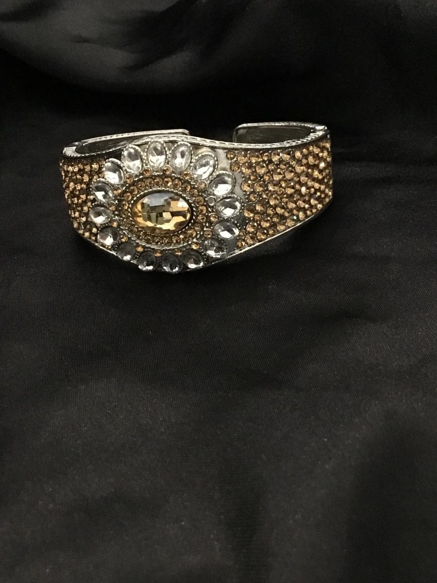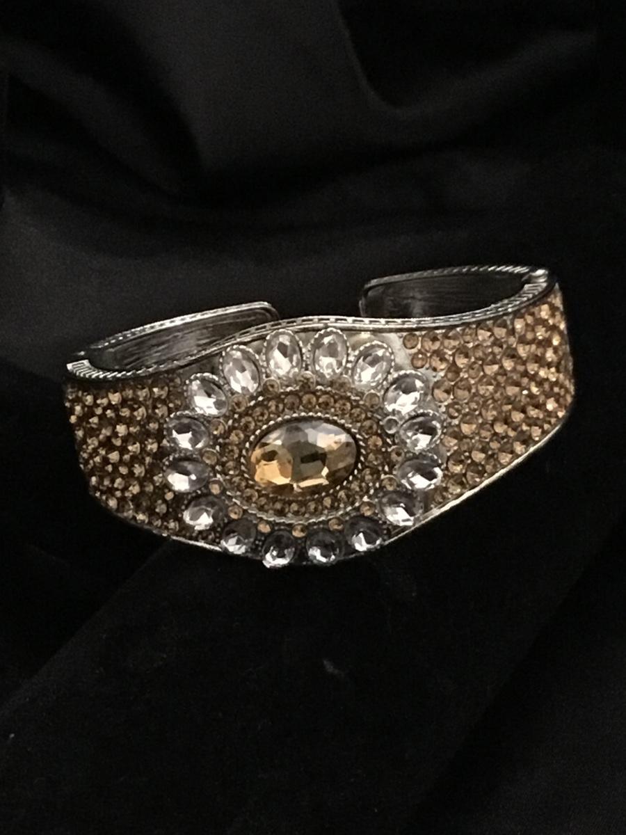 Silver tone adjustable bracelet with orange rhinestone