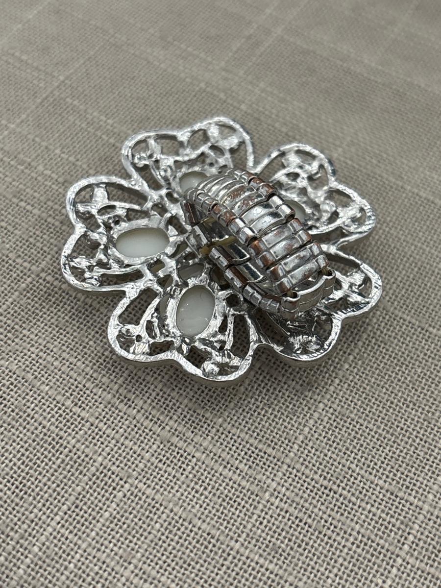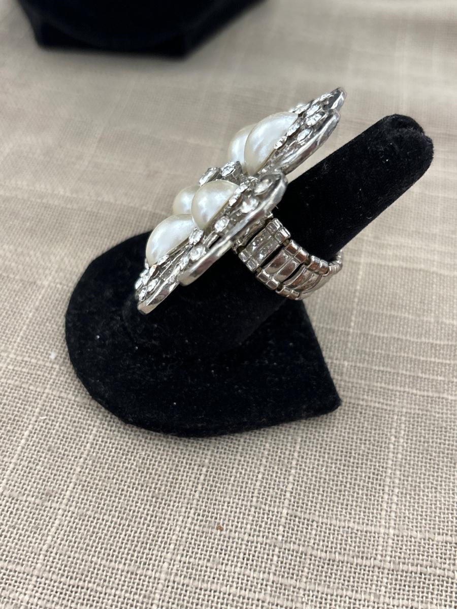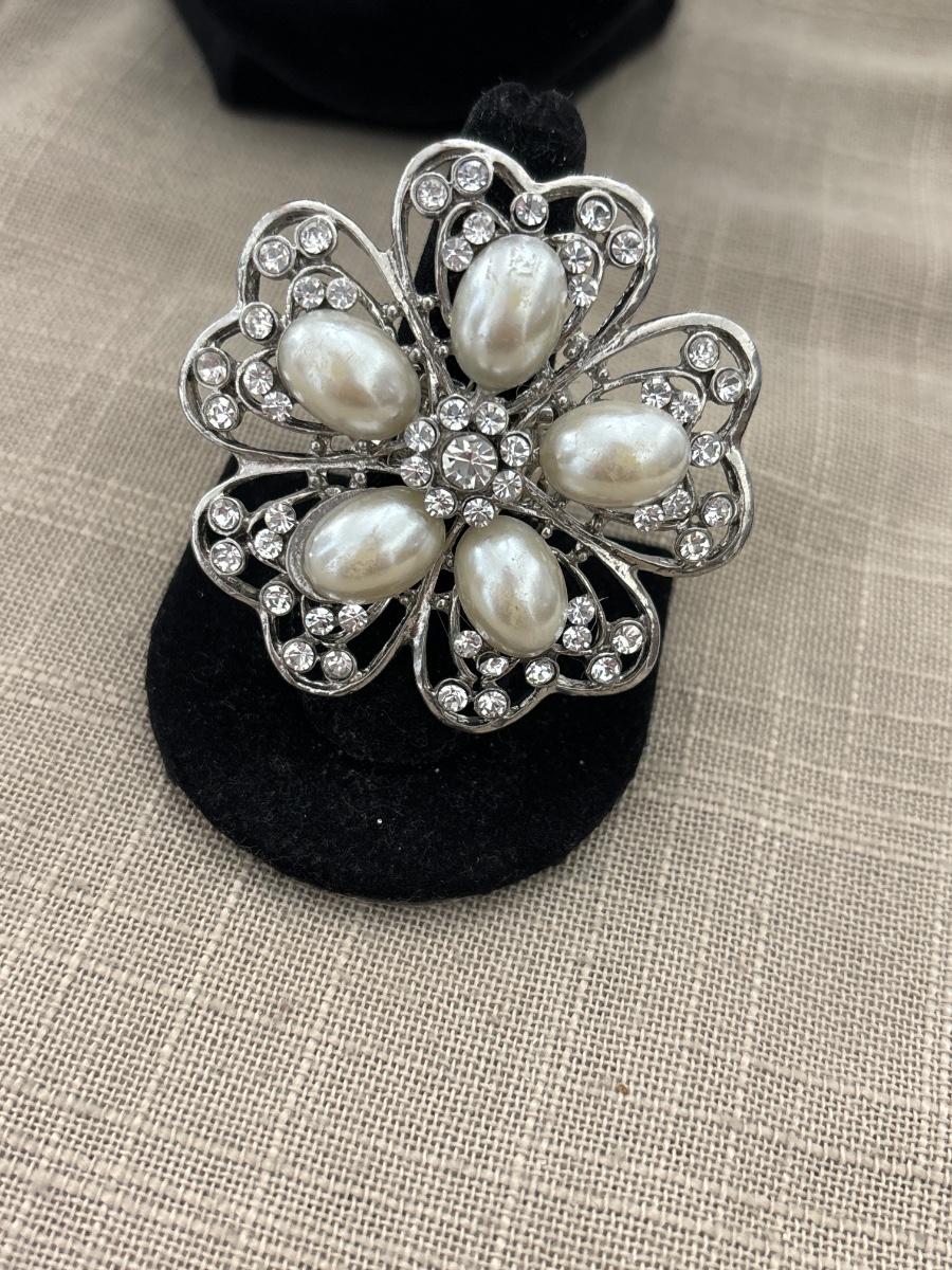Silver tone adjustable flower ring