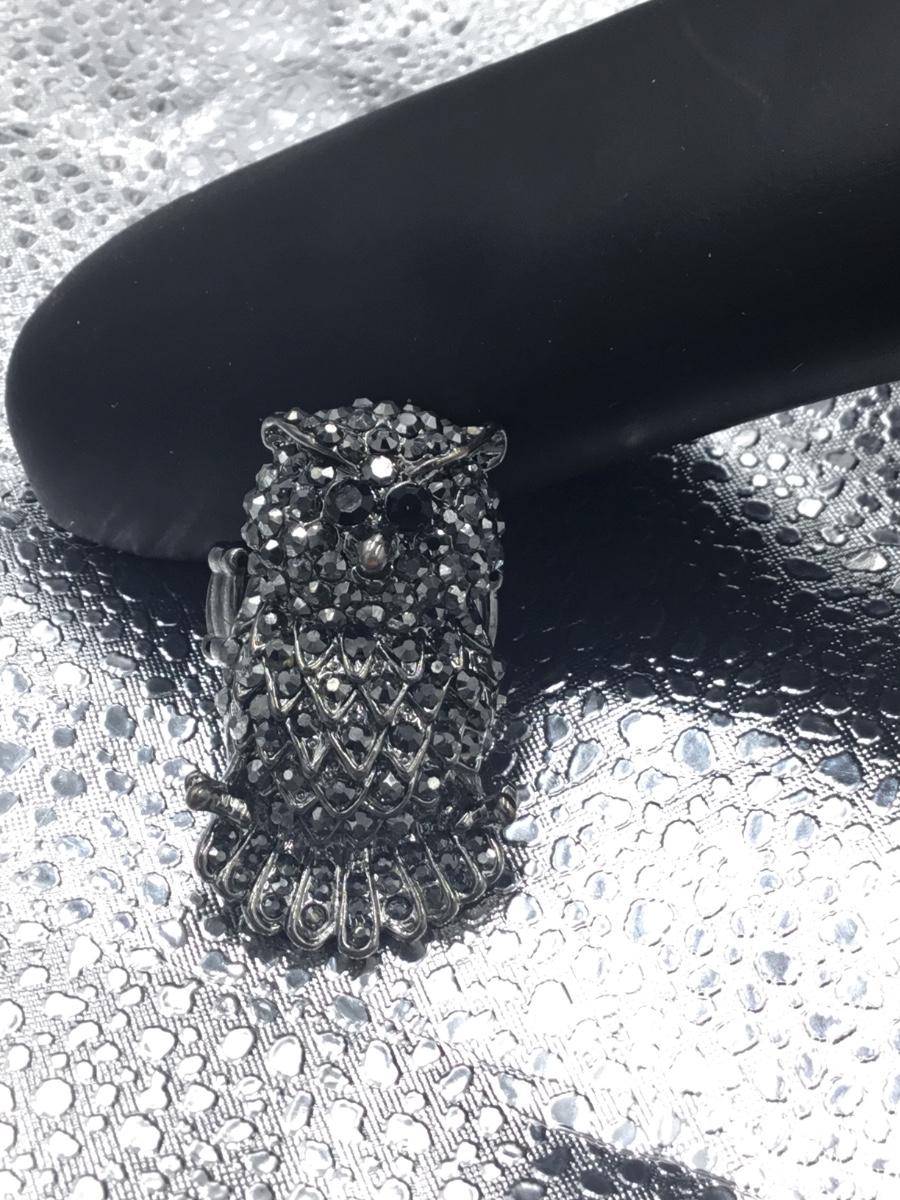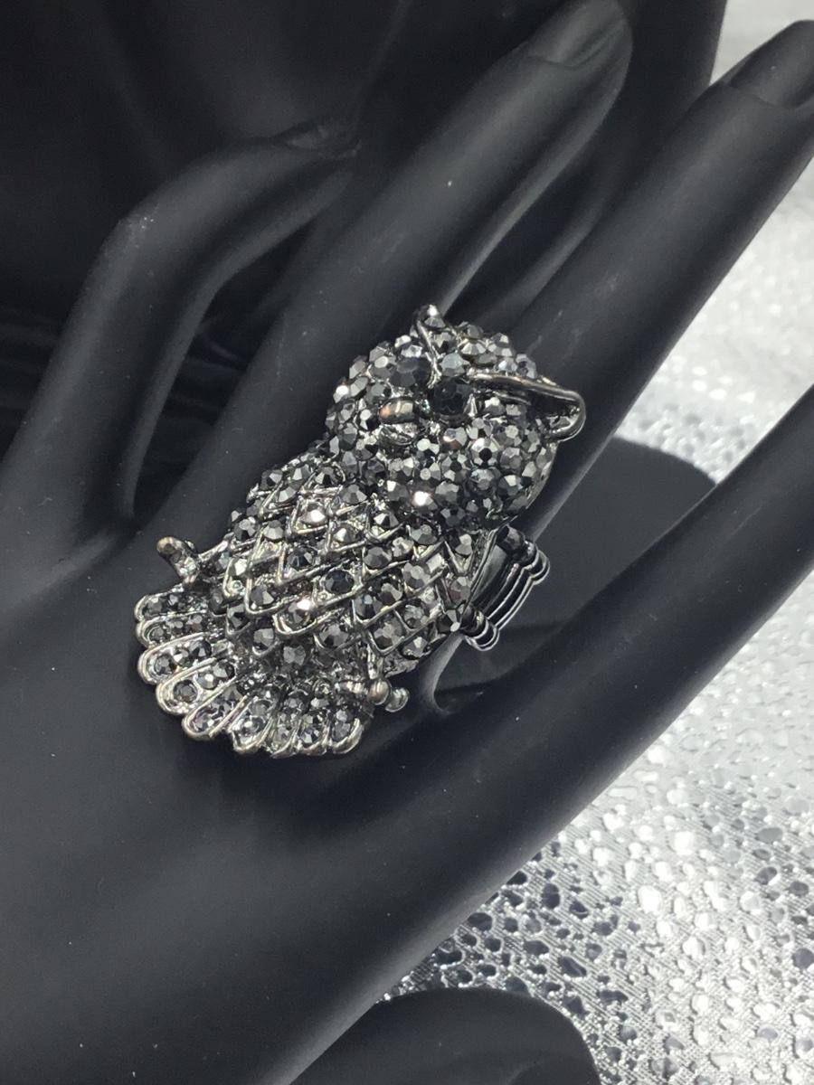 Silver tone adjustable owl ring