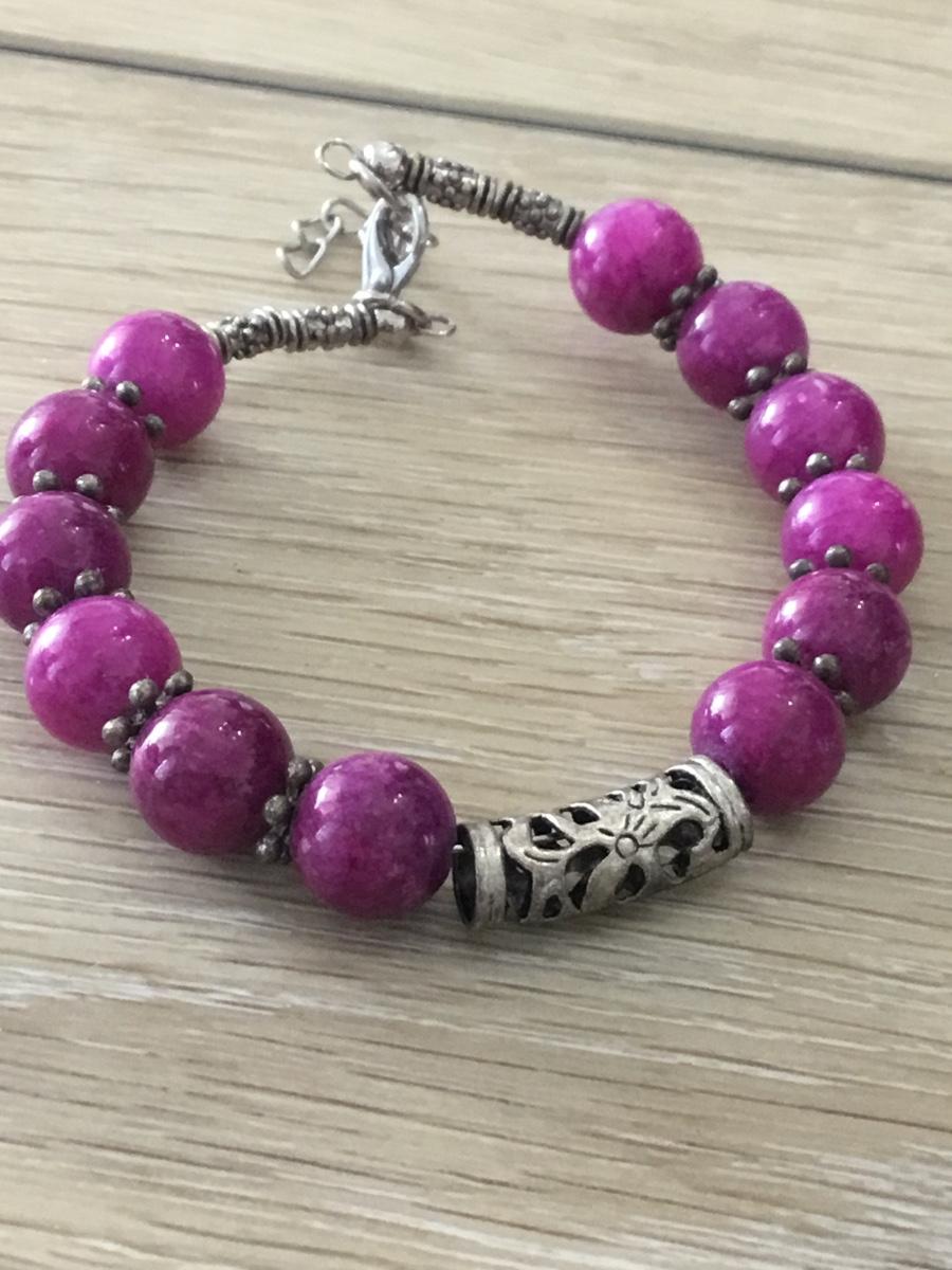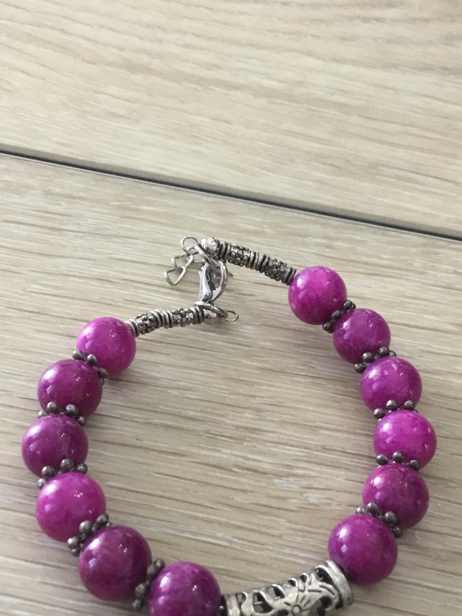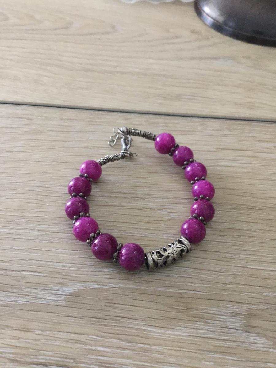 Silver tone adjustable purple beaded bracelet
