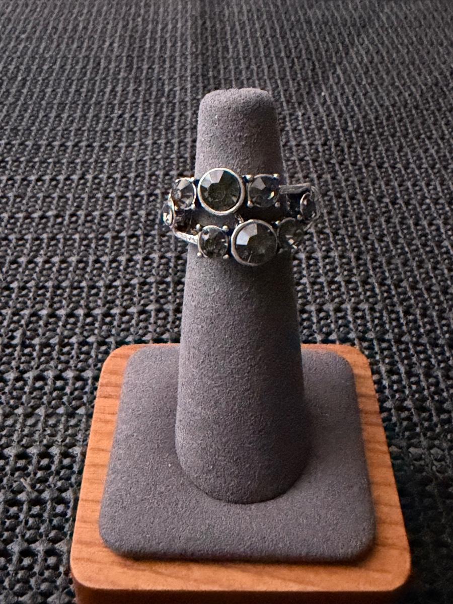 Silver tone adjustable ring with Smokey rhinestones