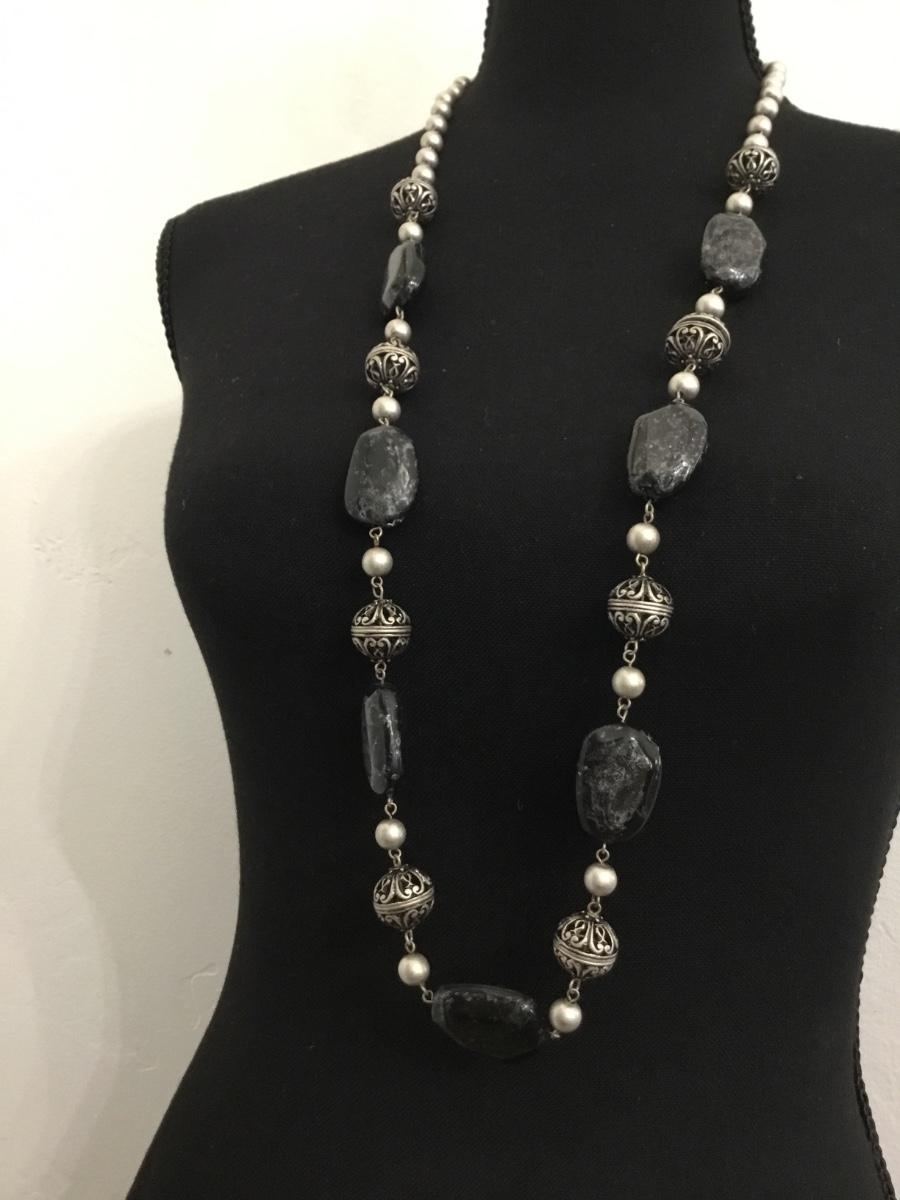 Silver tone and black fashion necklace VCLM marked