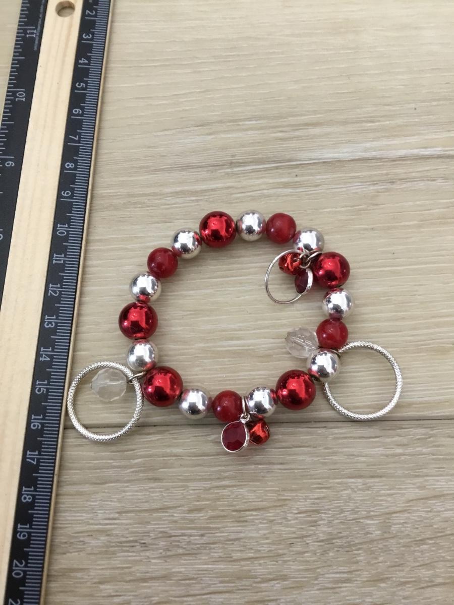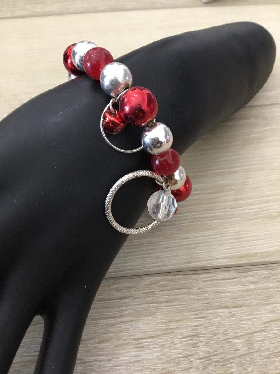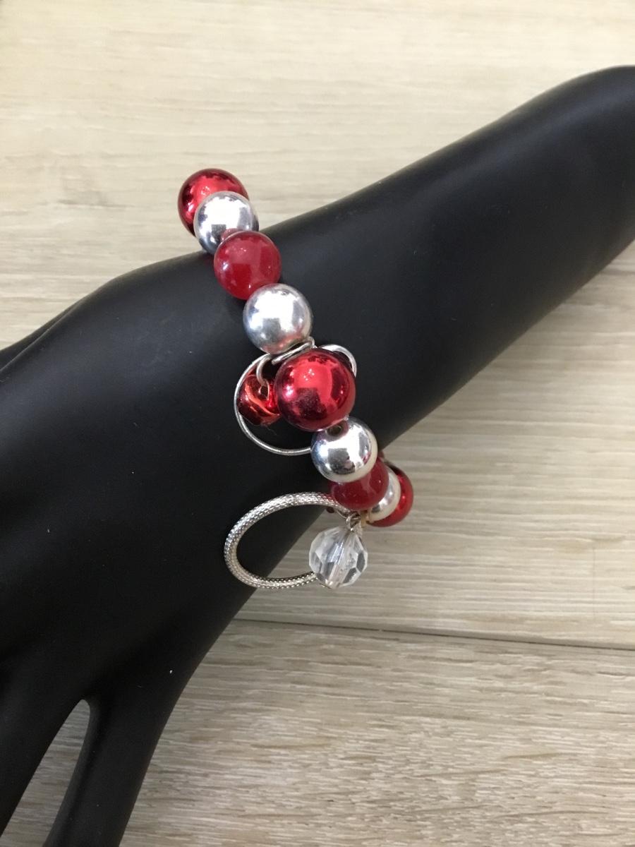 Silver tone and red beaded stretchy bracelet
