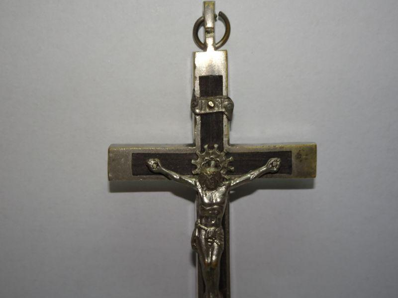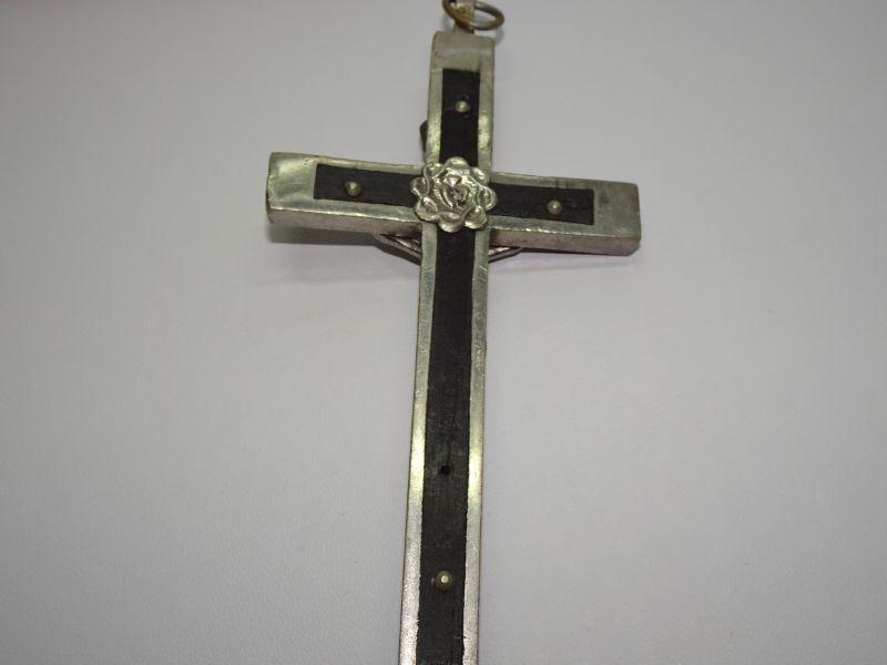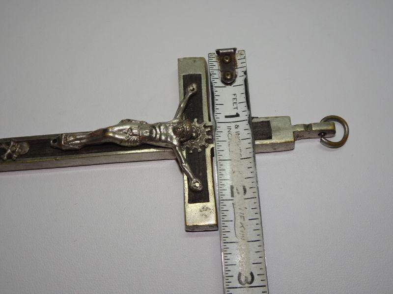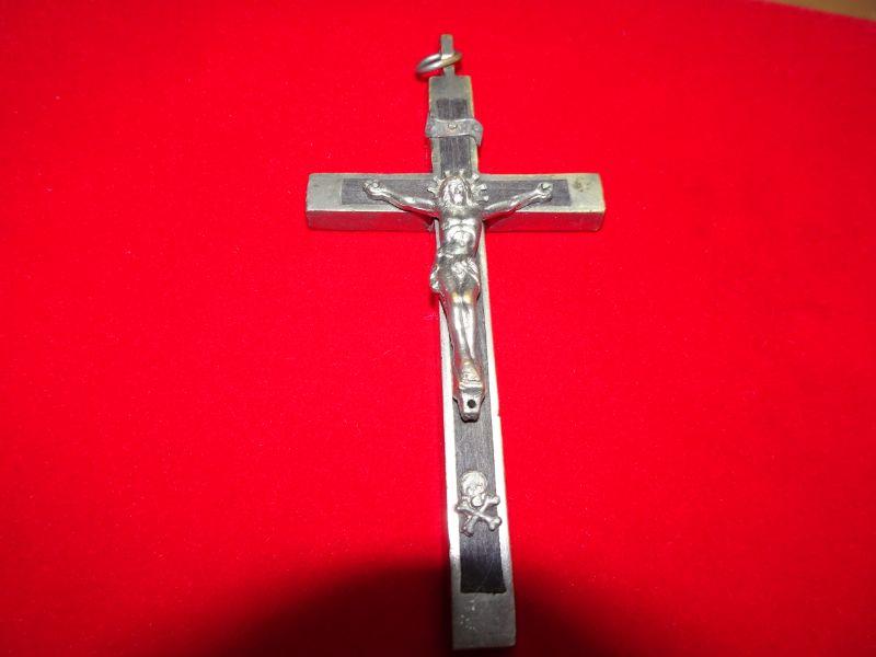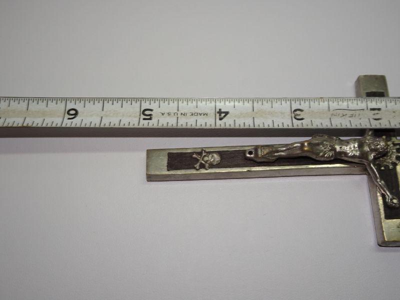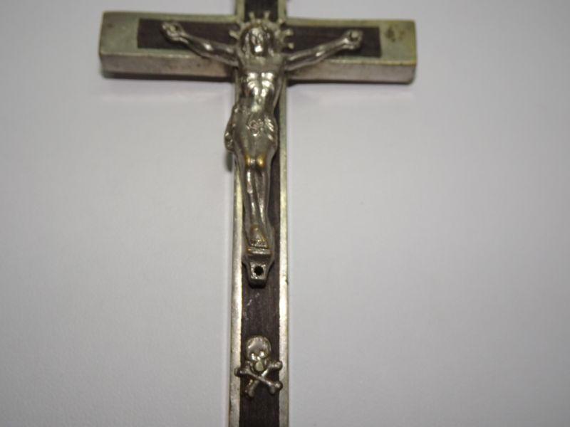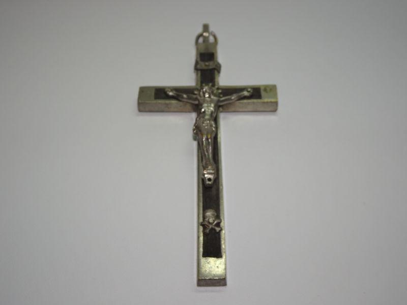 Silver Tone Antique Crucifix  Skull & Crossbones Pendant cross crucifix pectoral cross Jesus Christ corpus, Over-sized, Ebony Inlay
