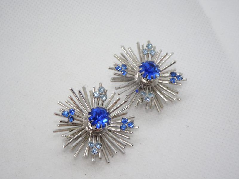 Silver Tone Atomic Clip Earrings, Signed Sarah Coventry
