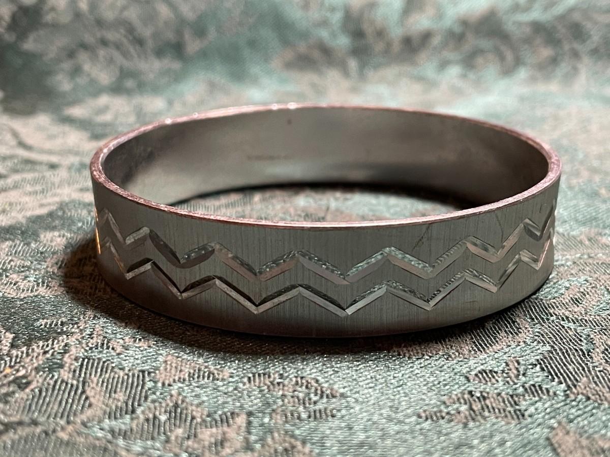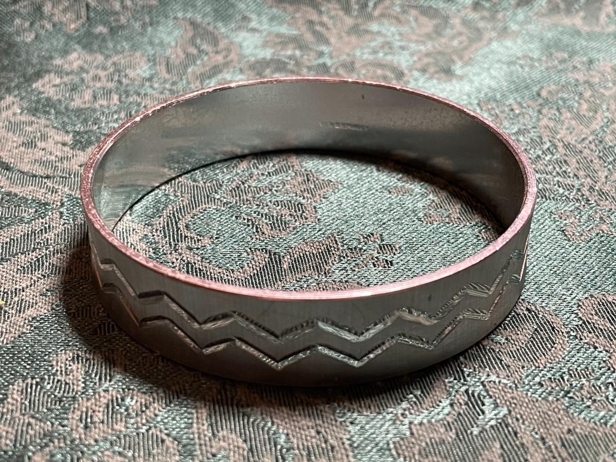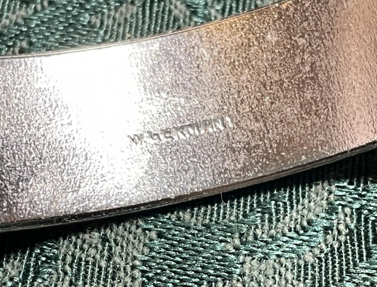 I'm not sure what type of metal this is, but it is lightweight (like aluminum) and is marked W Germany on the inside. It has about a 2.5" interior diameter.