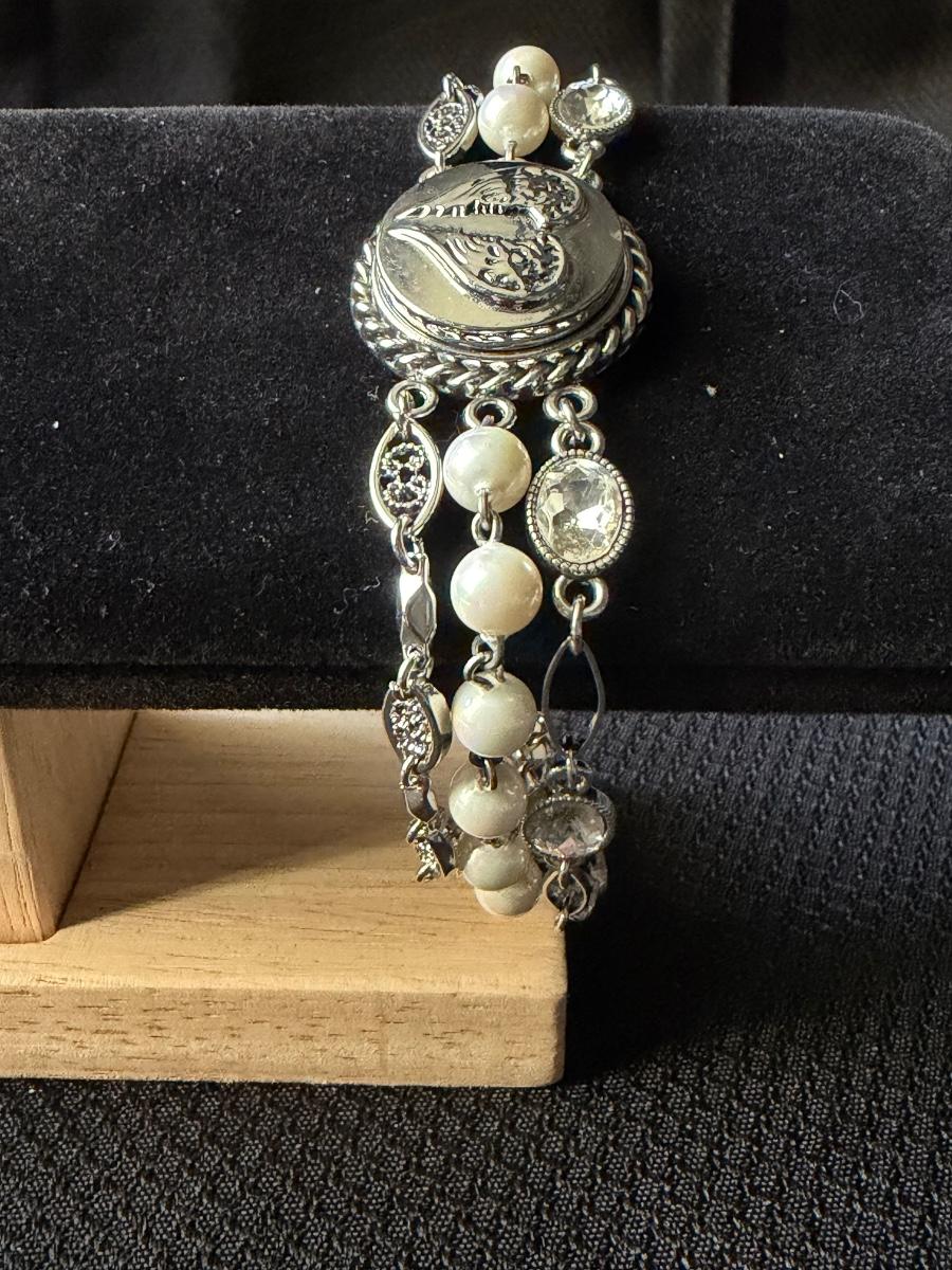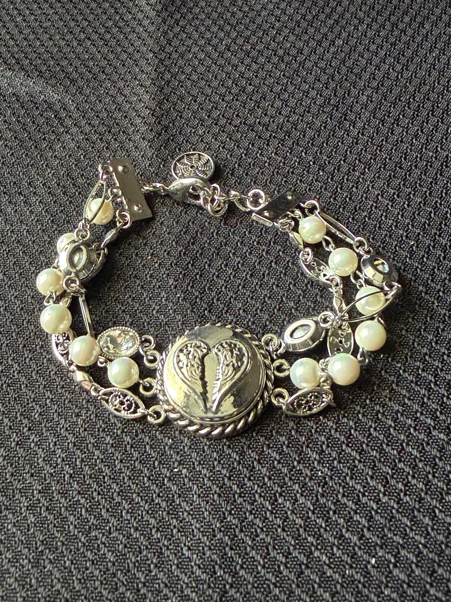 Silver tone beaded three strand bracelet