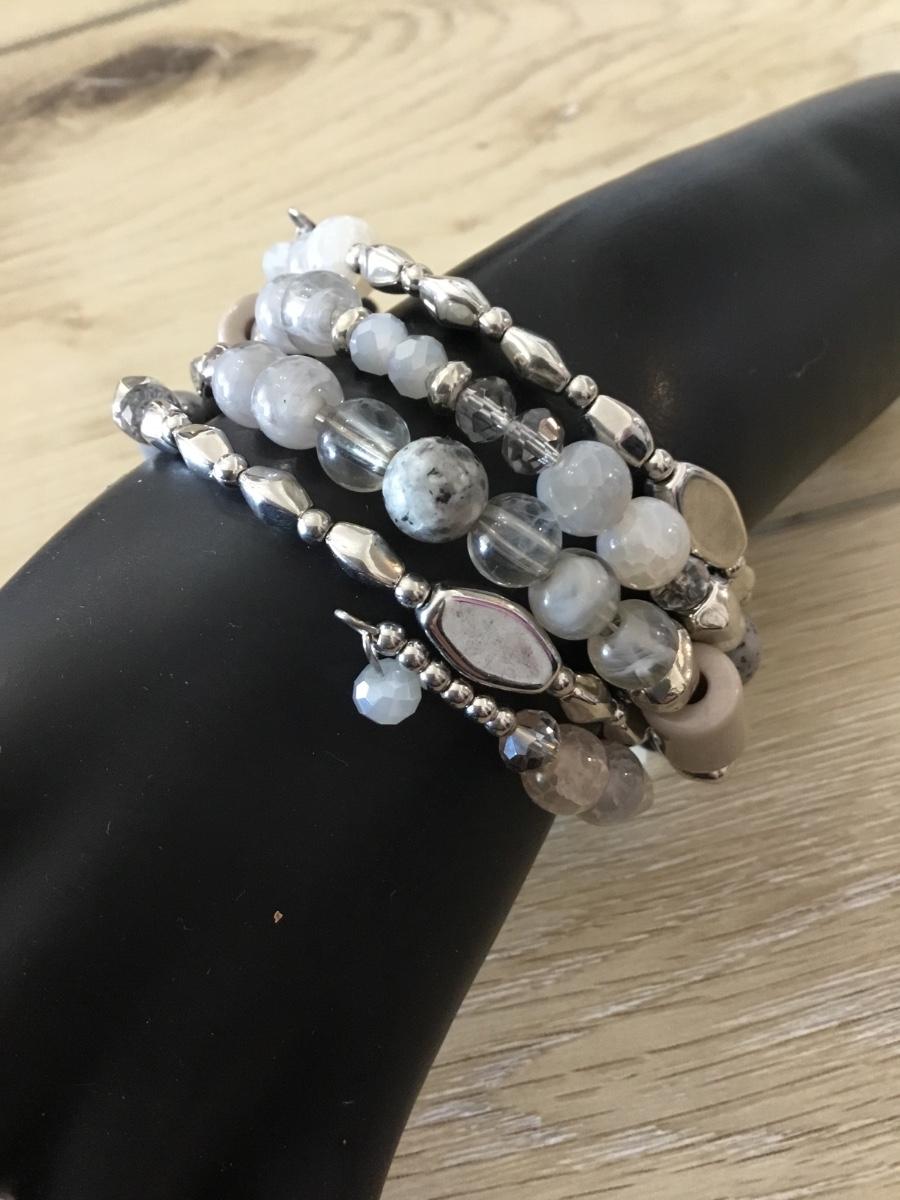 Silver tone beaded wire bracelet