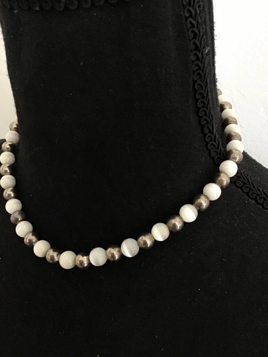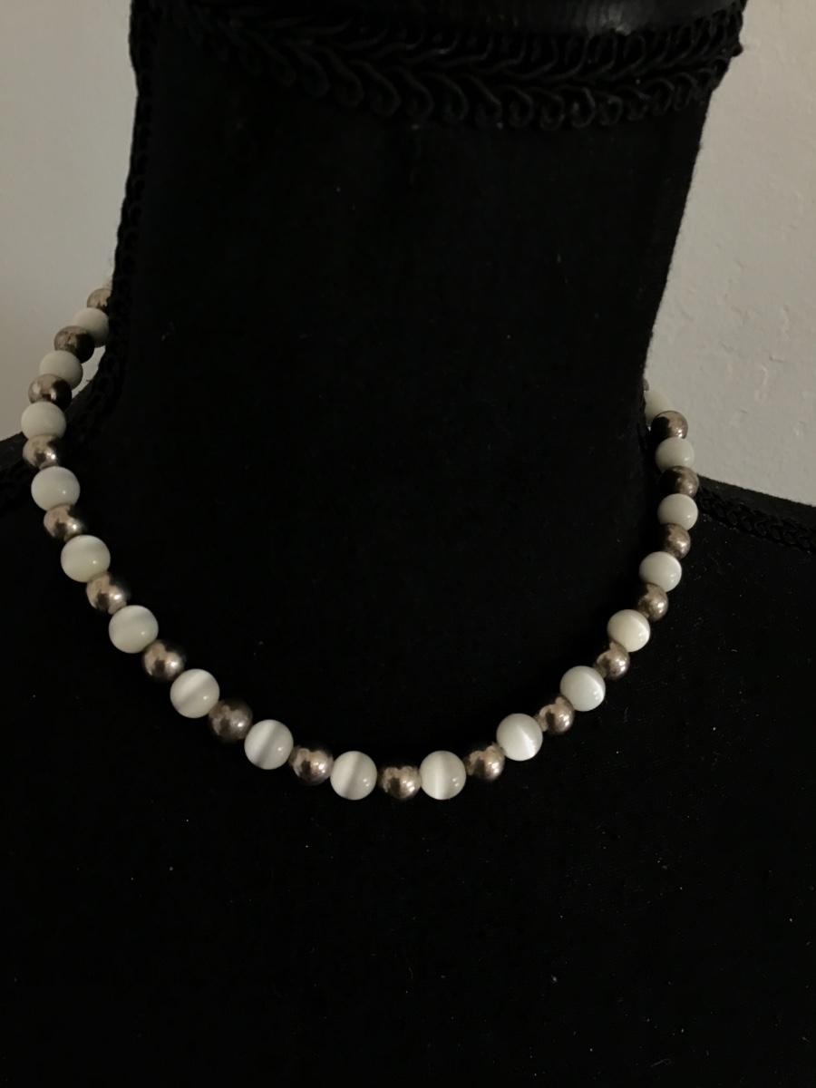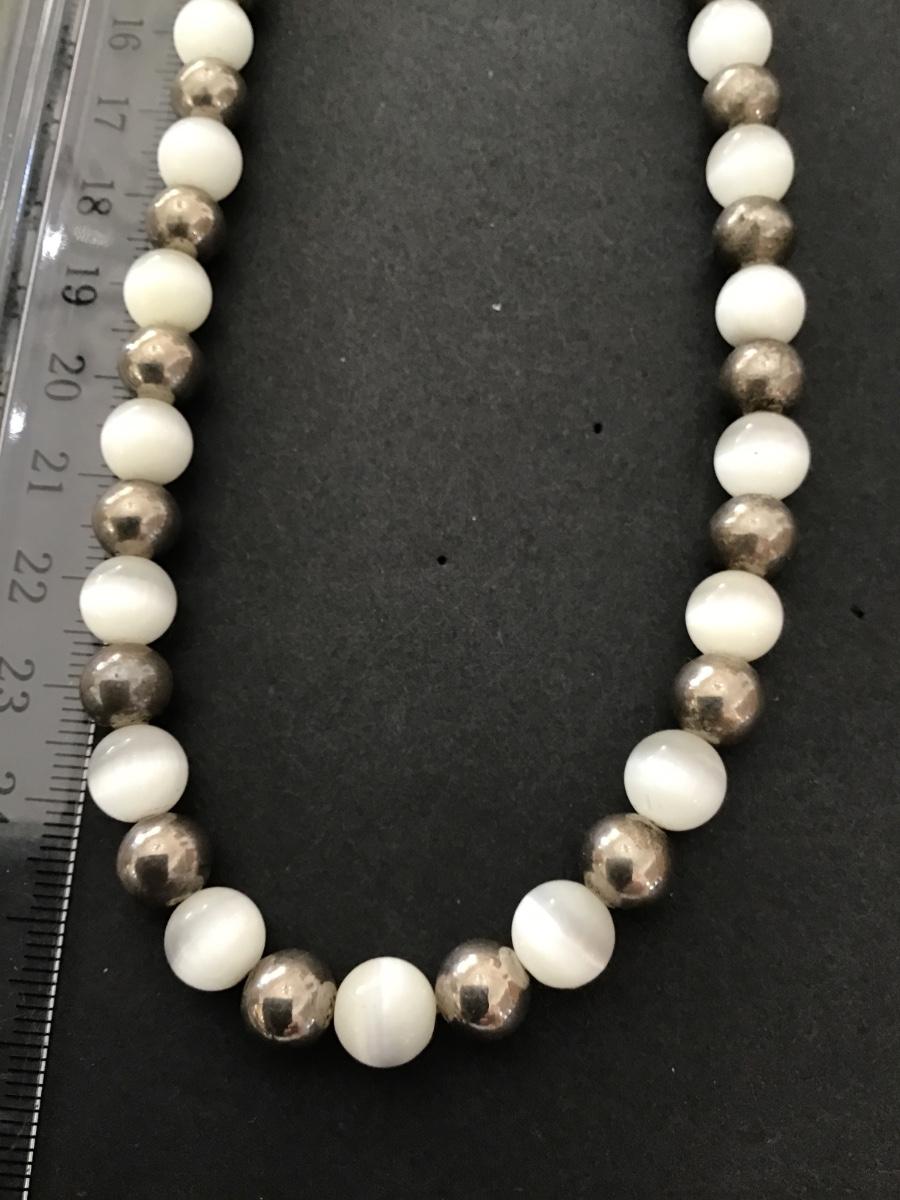 Silver tone Beads With White Glass Beads
