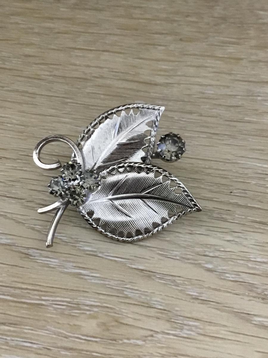 Silver tone beautiful leaf rhinestone pin
