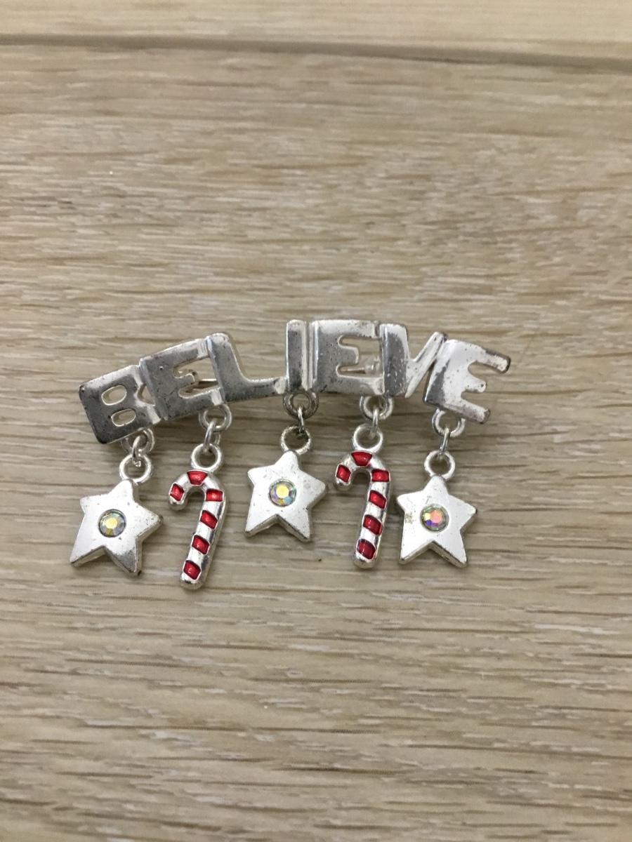 Silver tone believe pin