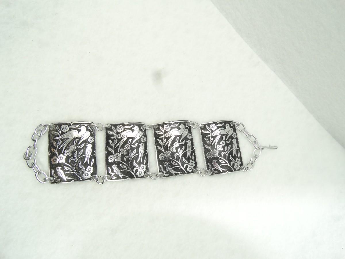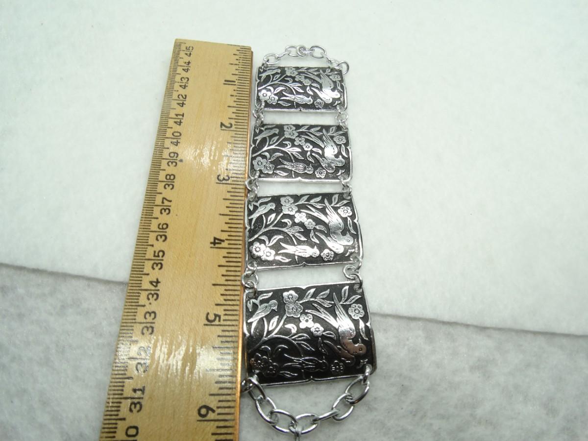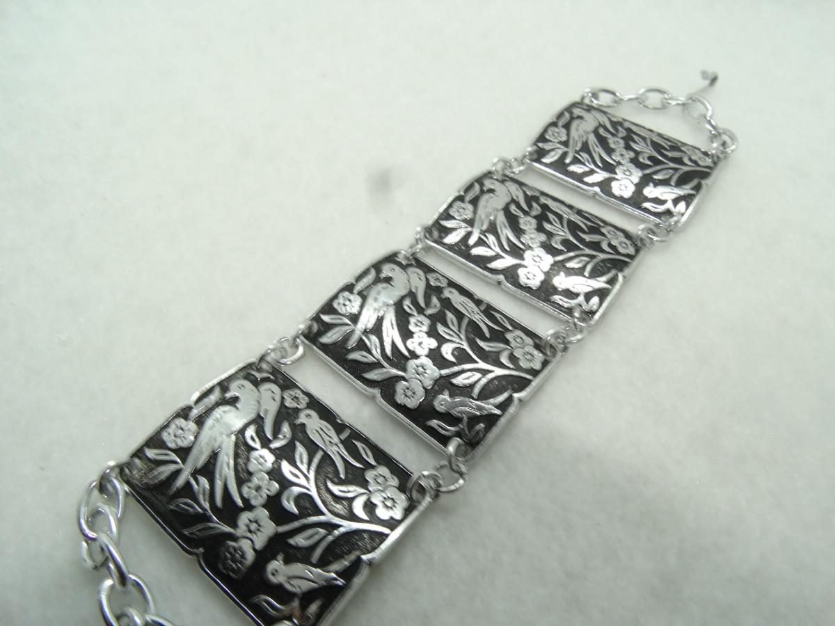 Silver Tone Bird Link Bracelet, Swallows, Victorian Style - Light Weight