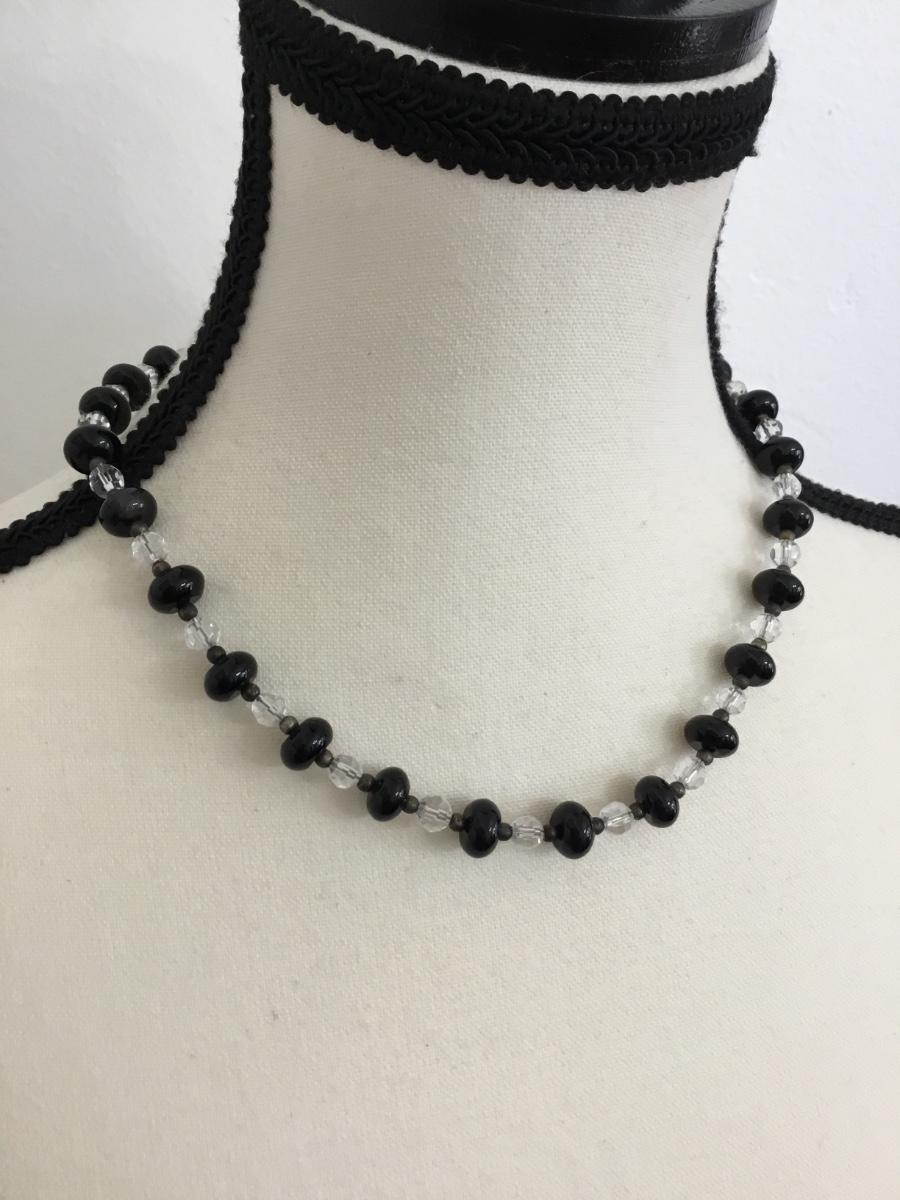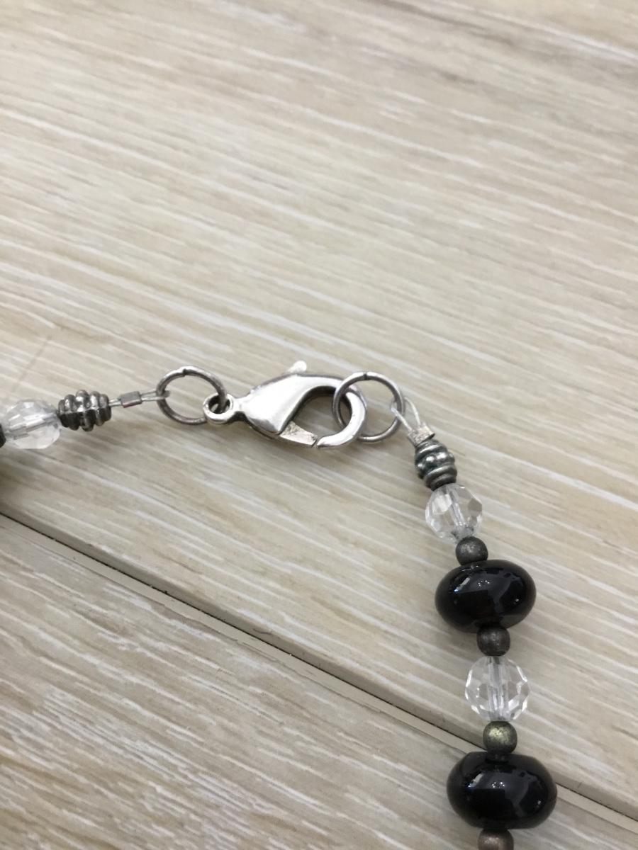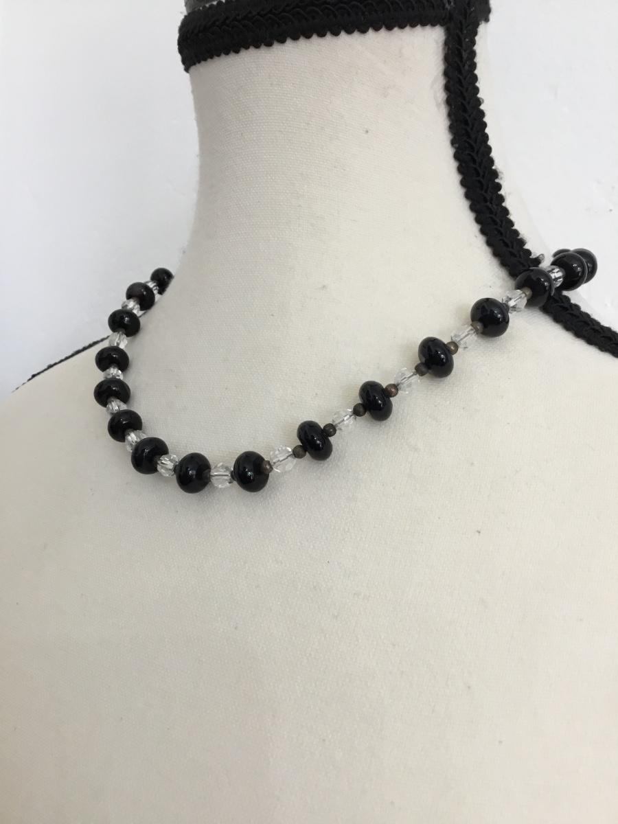 Silver tone black and clear beaded necklace