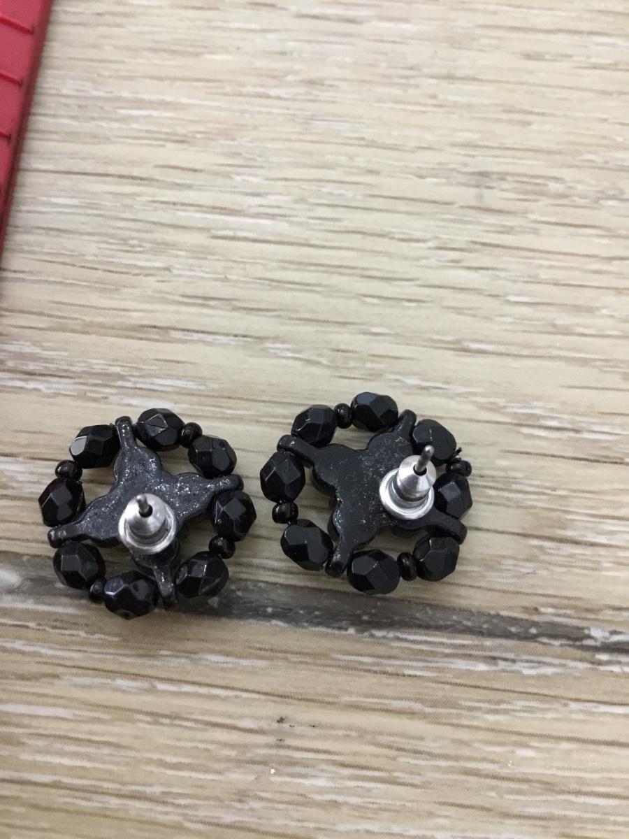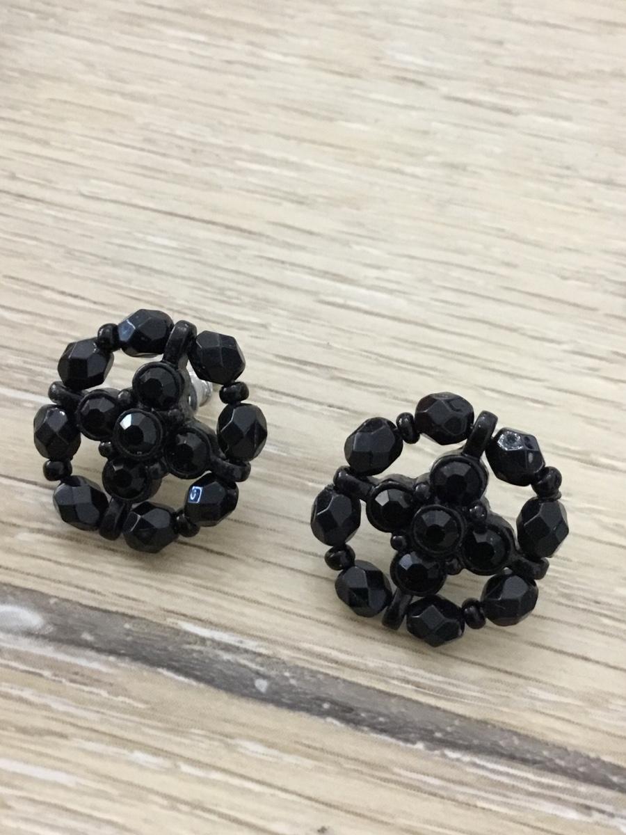 Silver tone black beaded fashion earrings