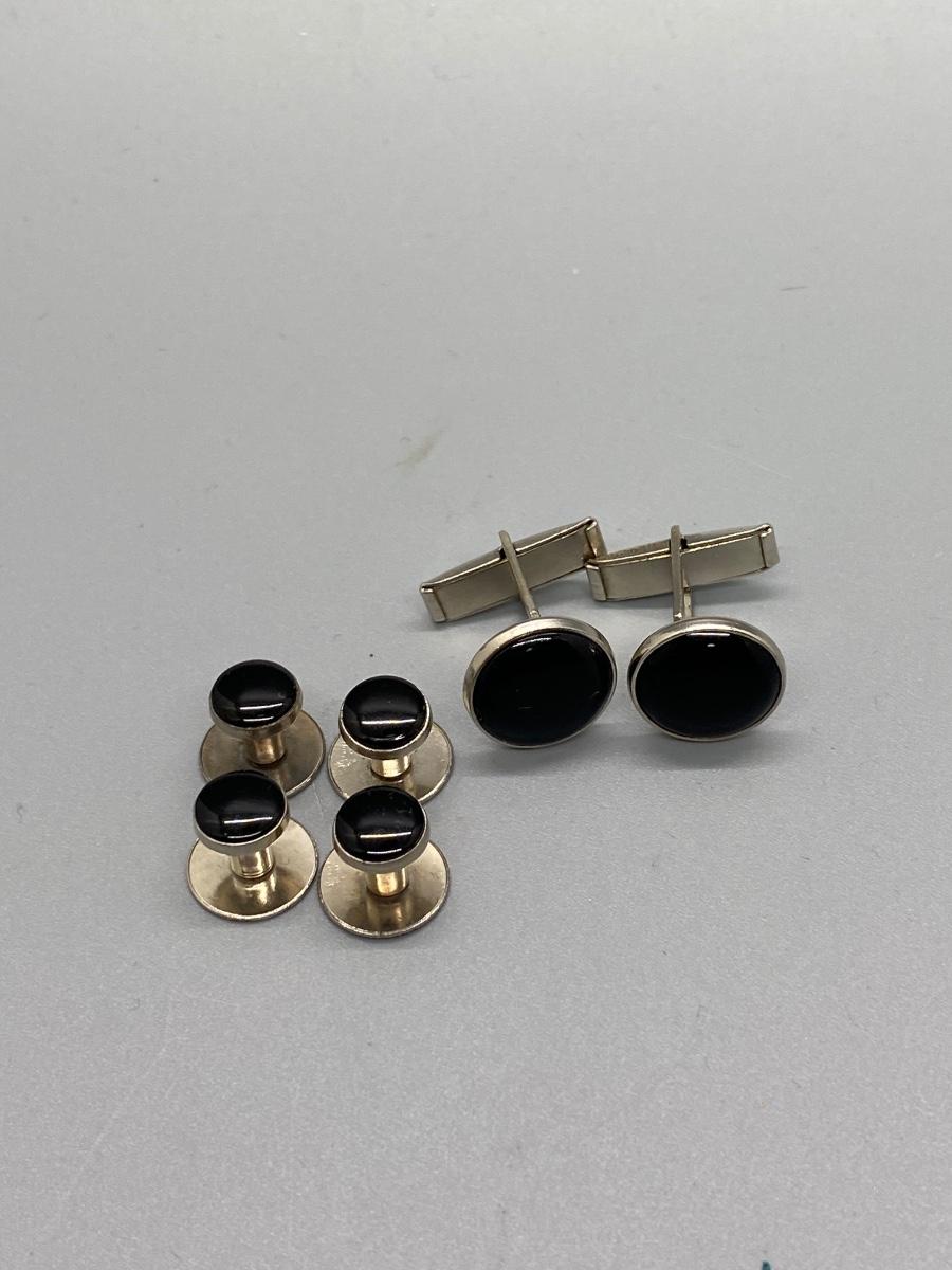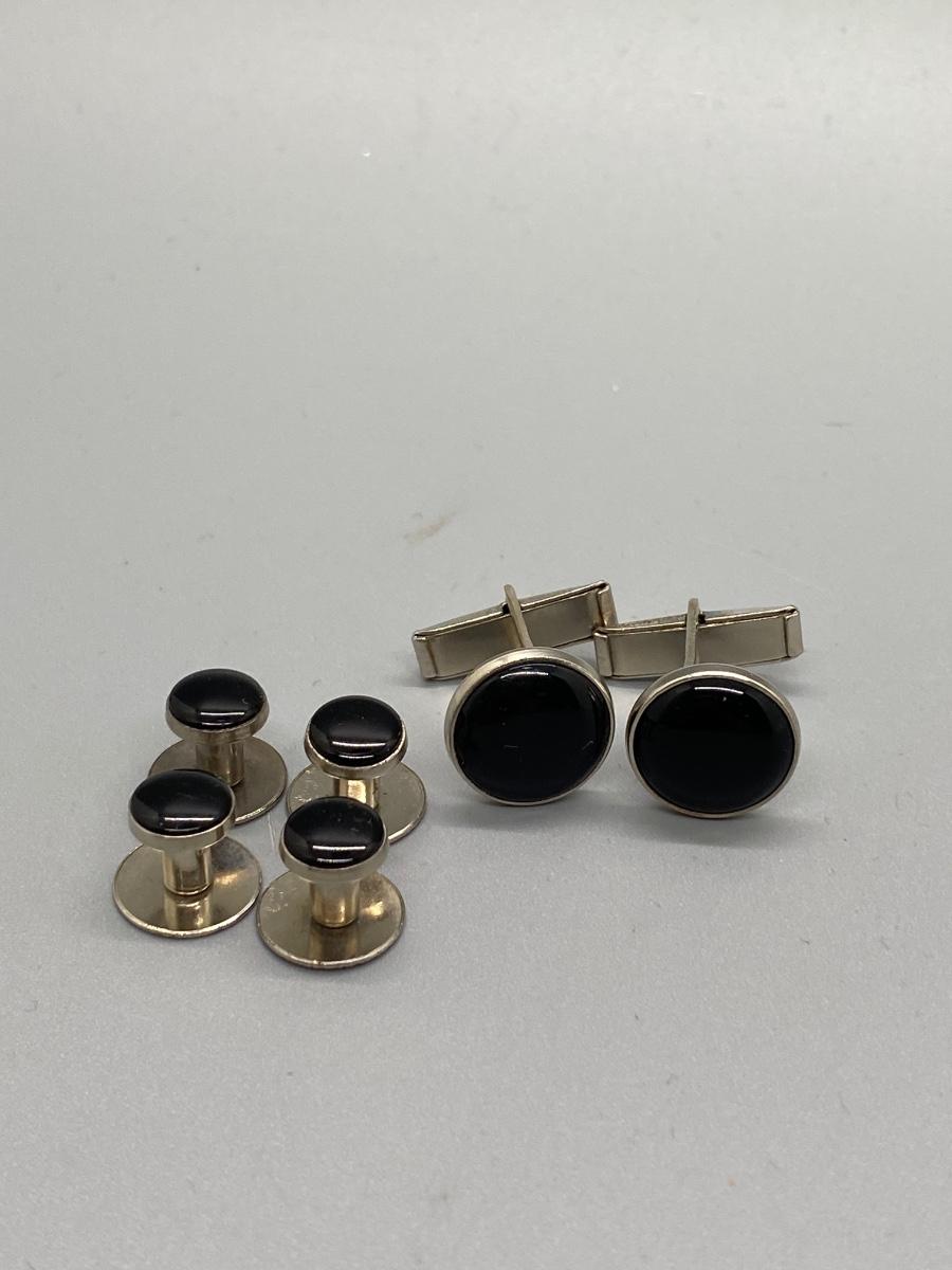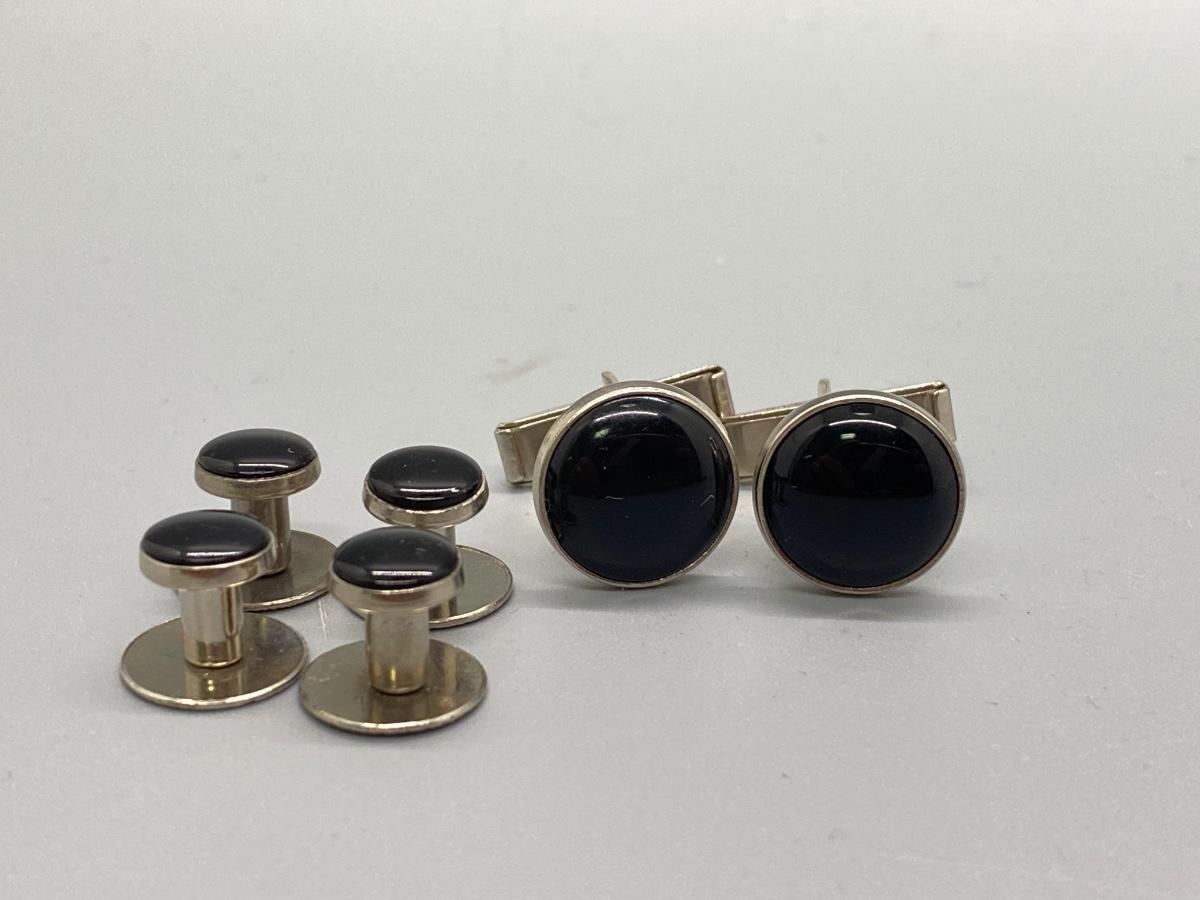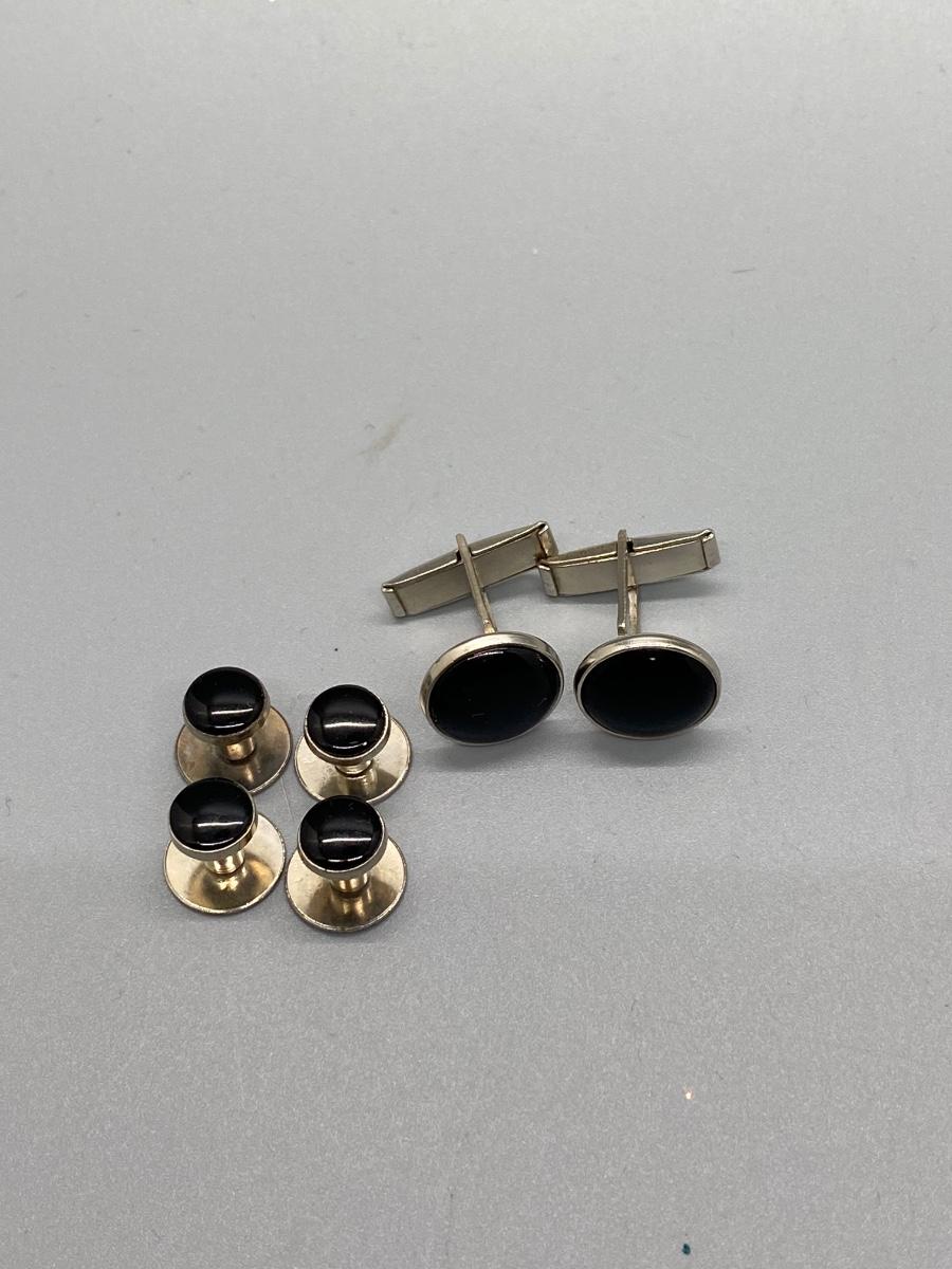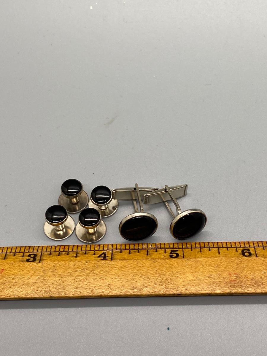 Silver Tone & Black Cufflinks and Suit Button Studs