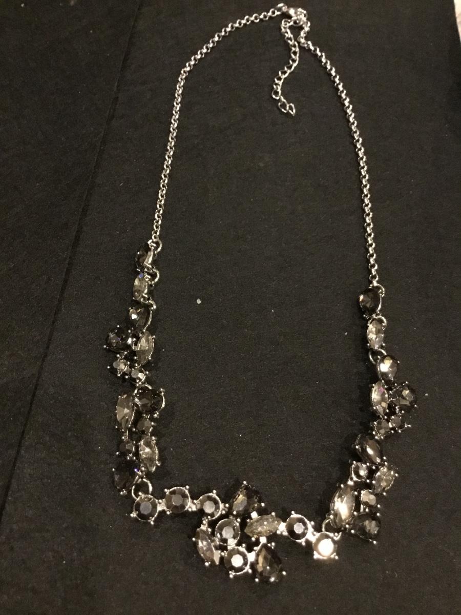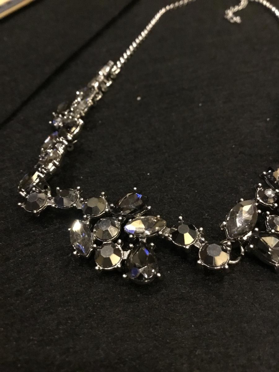 Silver tone black statement rhinestone necklace