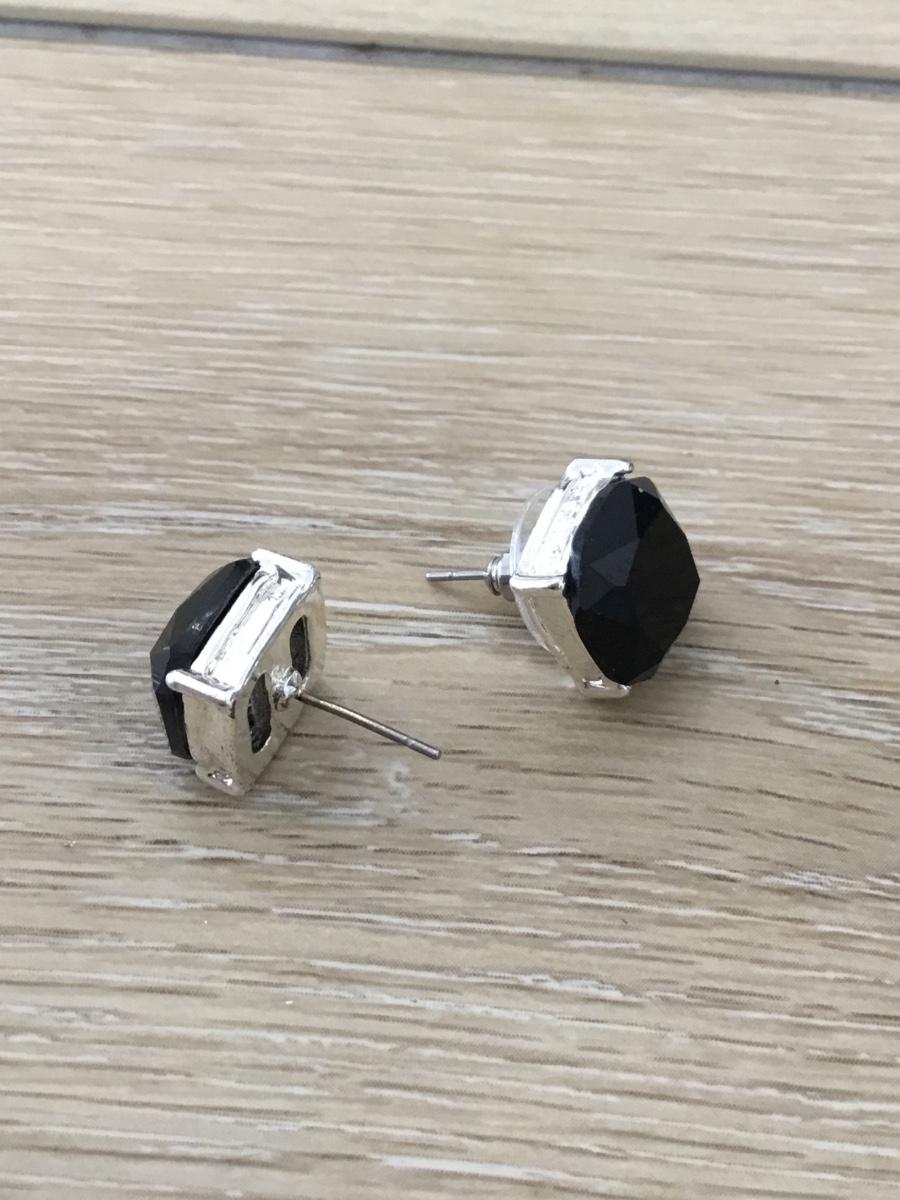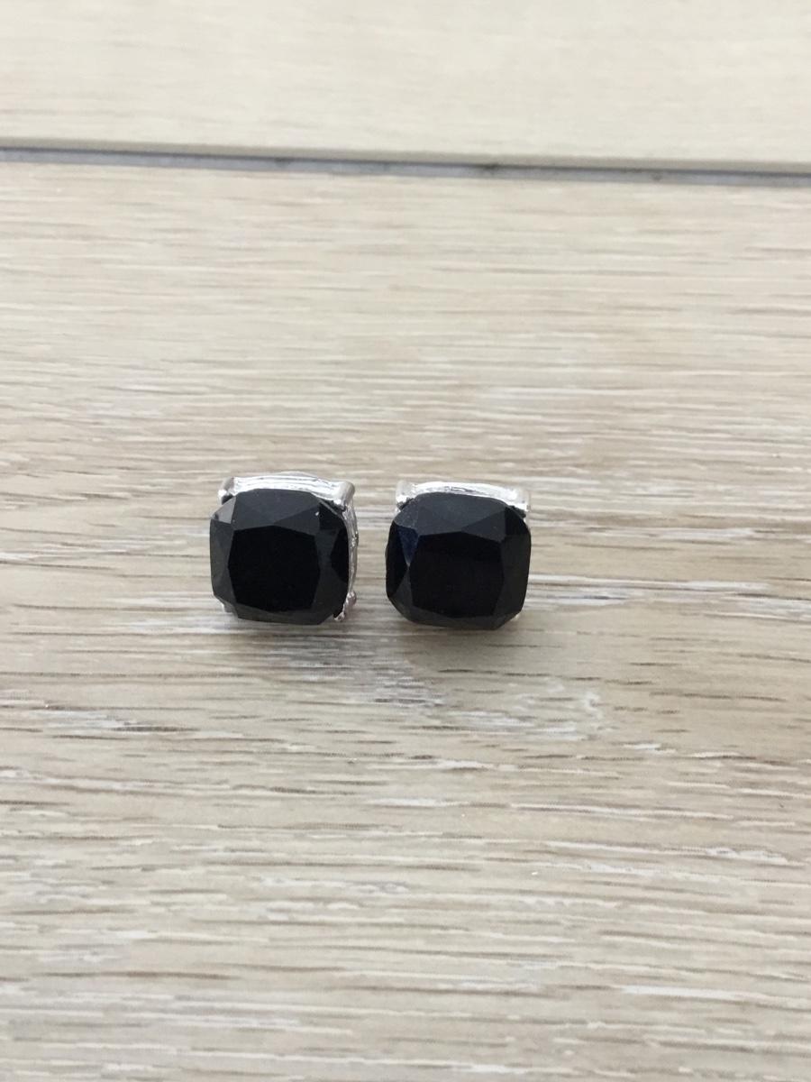 Silver tone black stud earrings