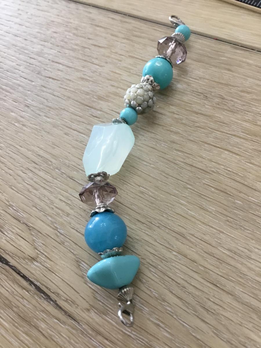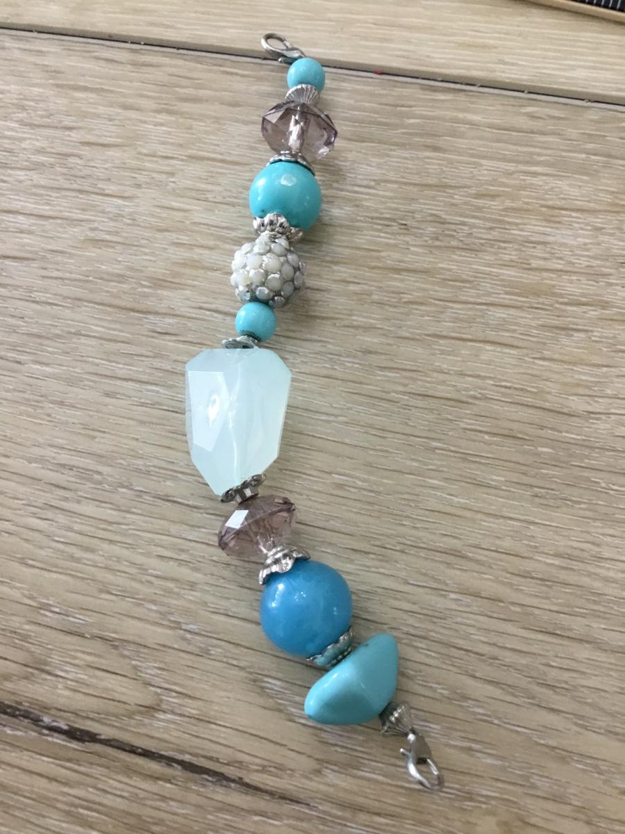 Silver tone blue beaded long keychain charm