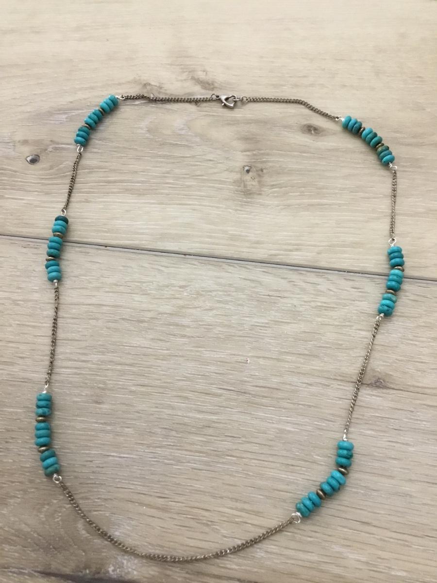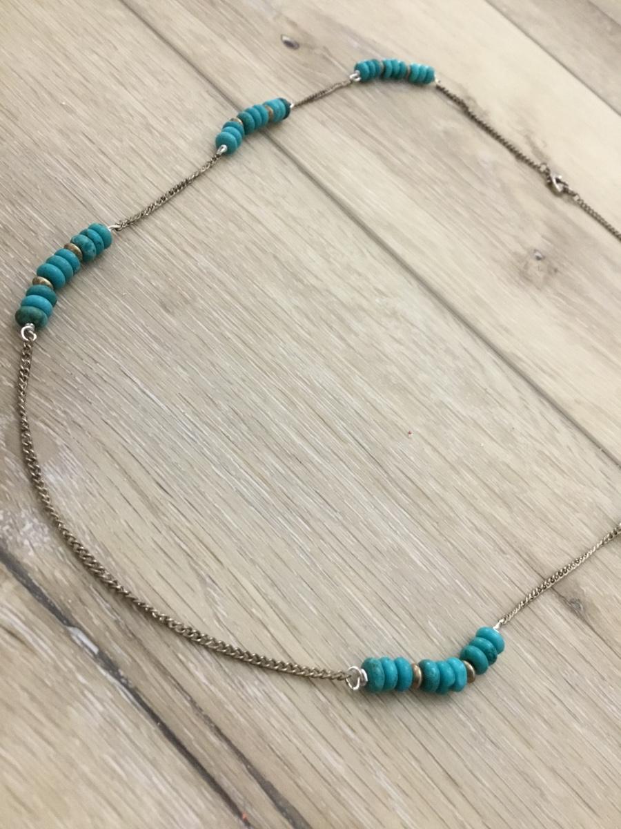 Silver tone blue circle beaded fashion necklace