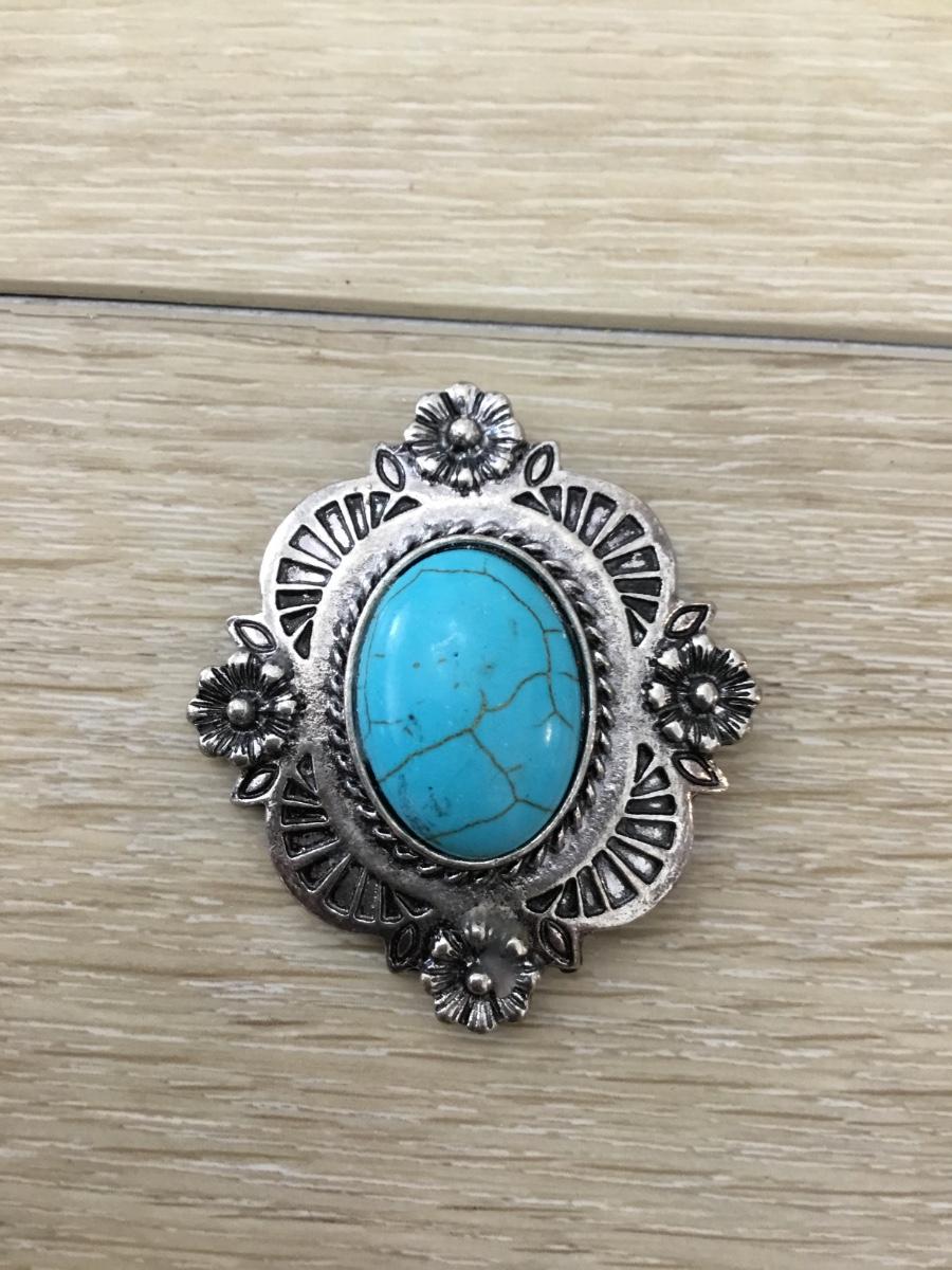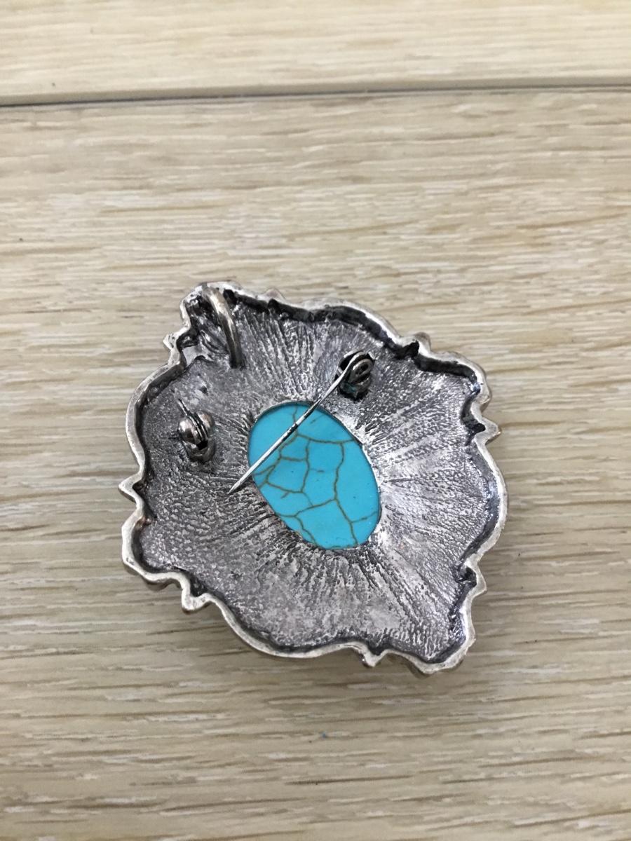 Silver tone blue howlite stone type necklace pendant or brooch