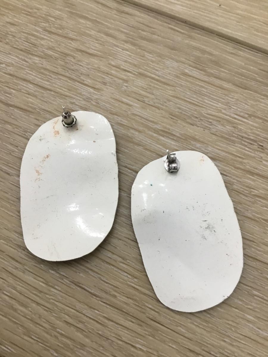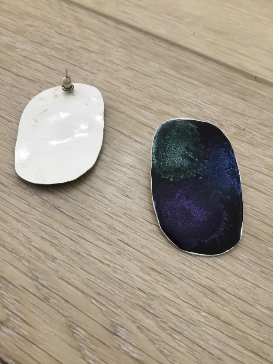 Silver tone blue purple and green splat design earrings