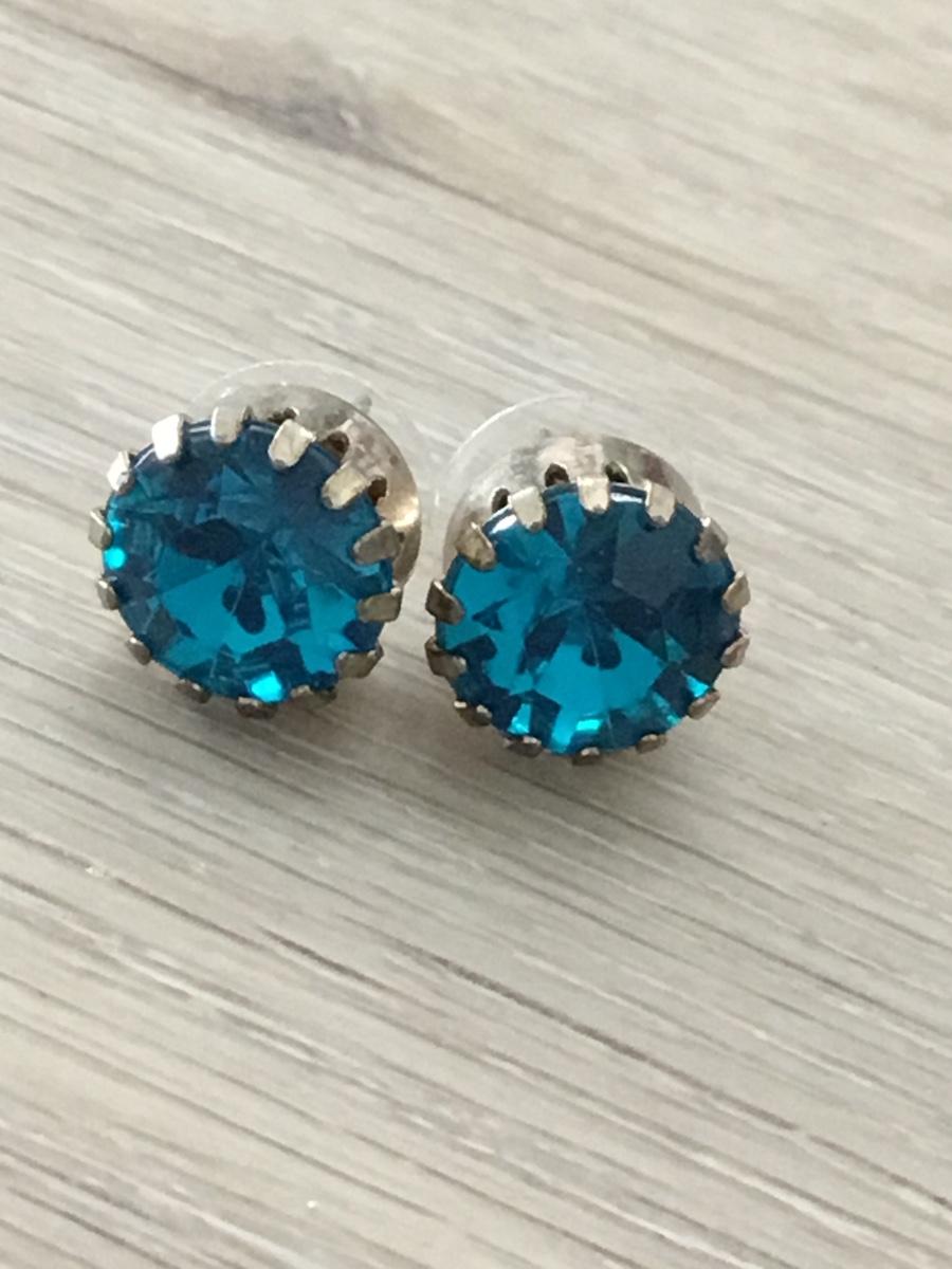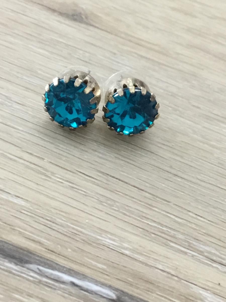 Silver tone blue stud earrings