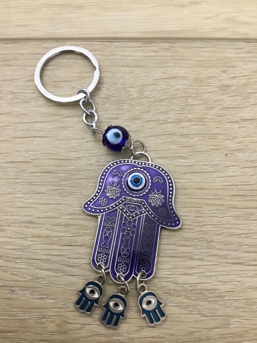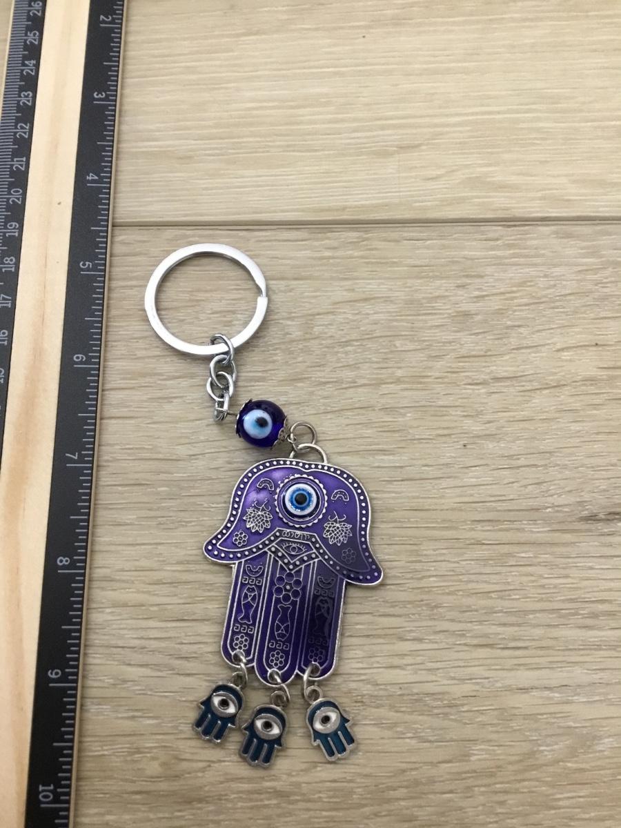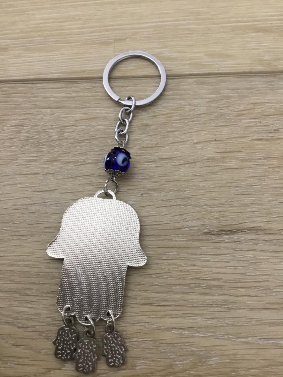 Silver tone blue third eye hand keychain charm